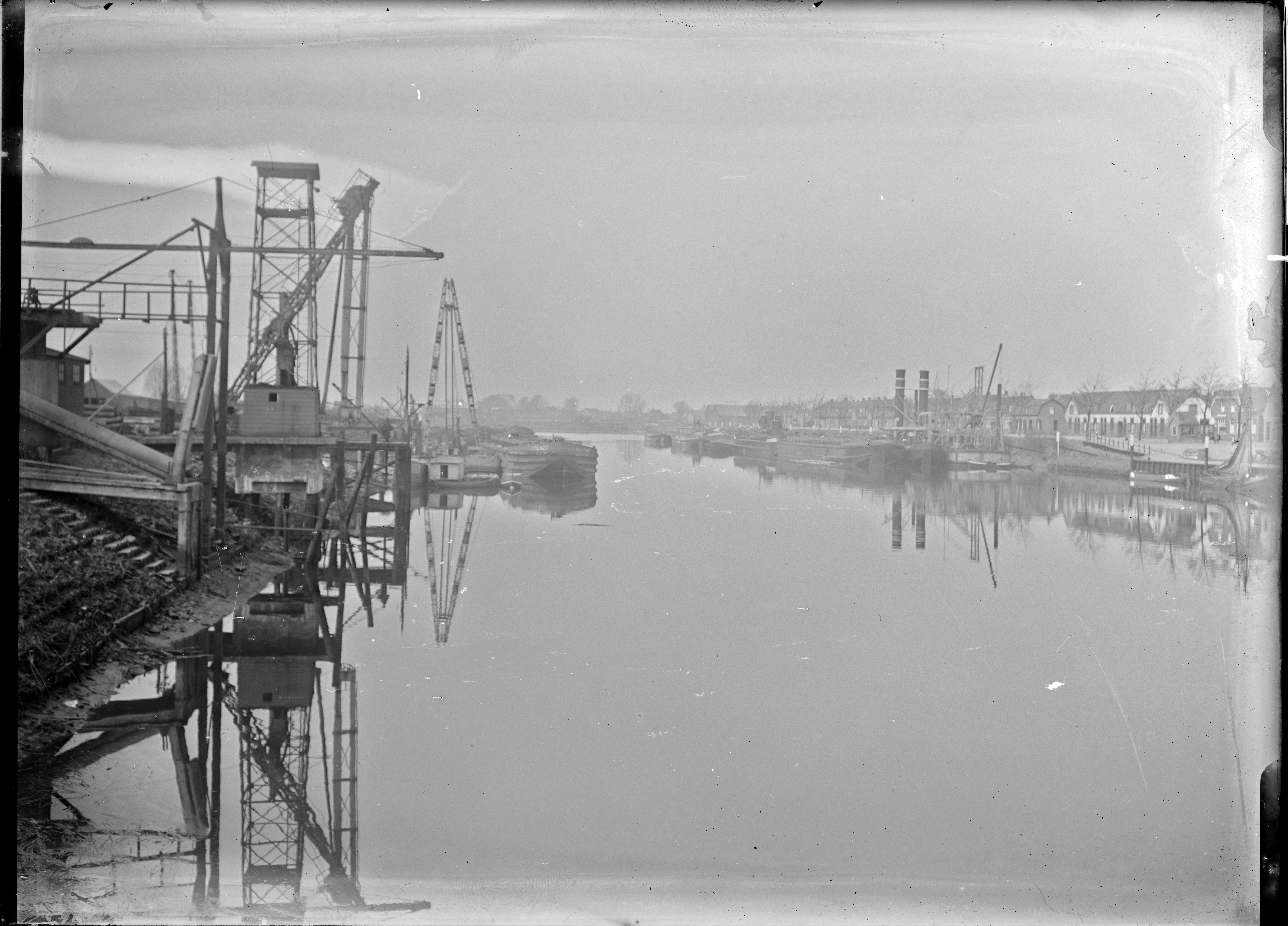 - De haven in Sliedrecht vanaf de Merwestraat. Rechts de Havenstraat.