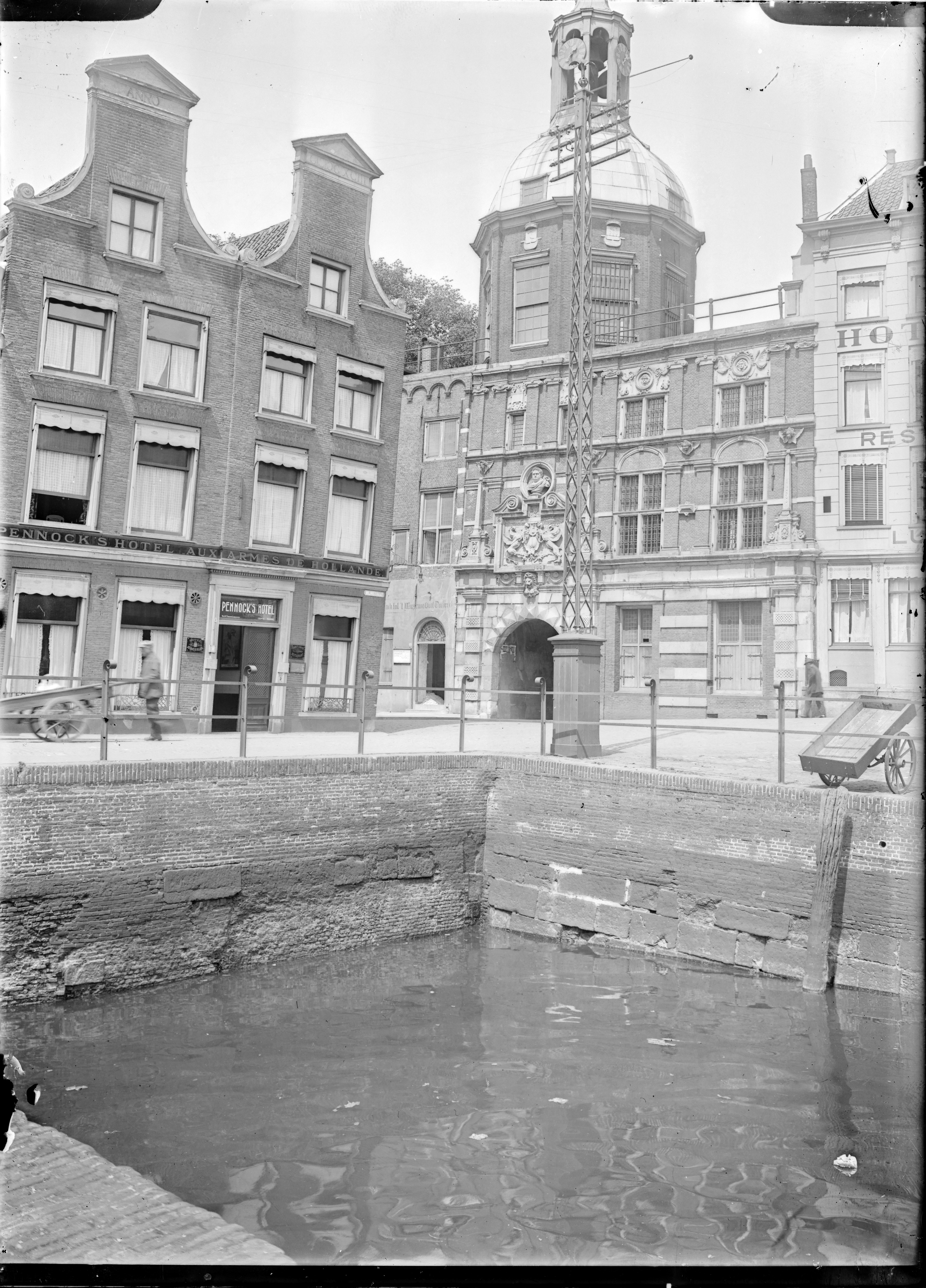 Links Hotel Pennock in de Wijnstraat. De Groothoofdspoort en Hotel Bellevue aan het …