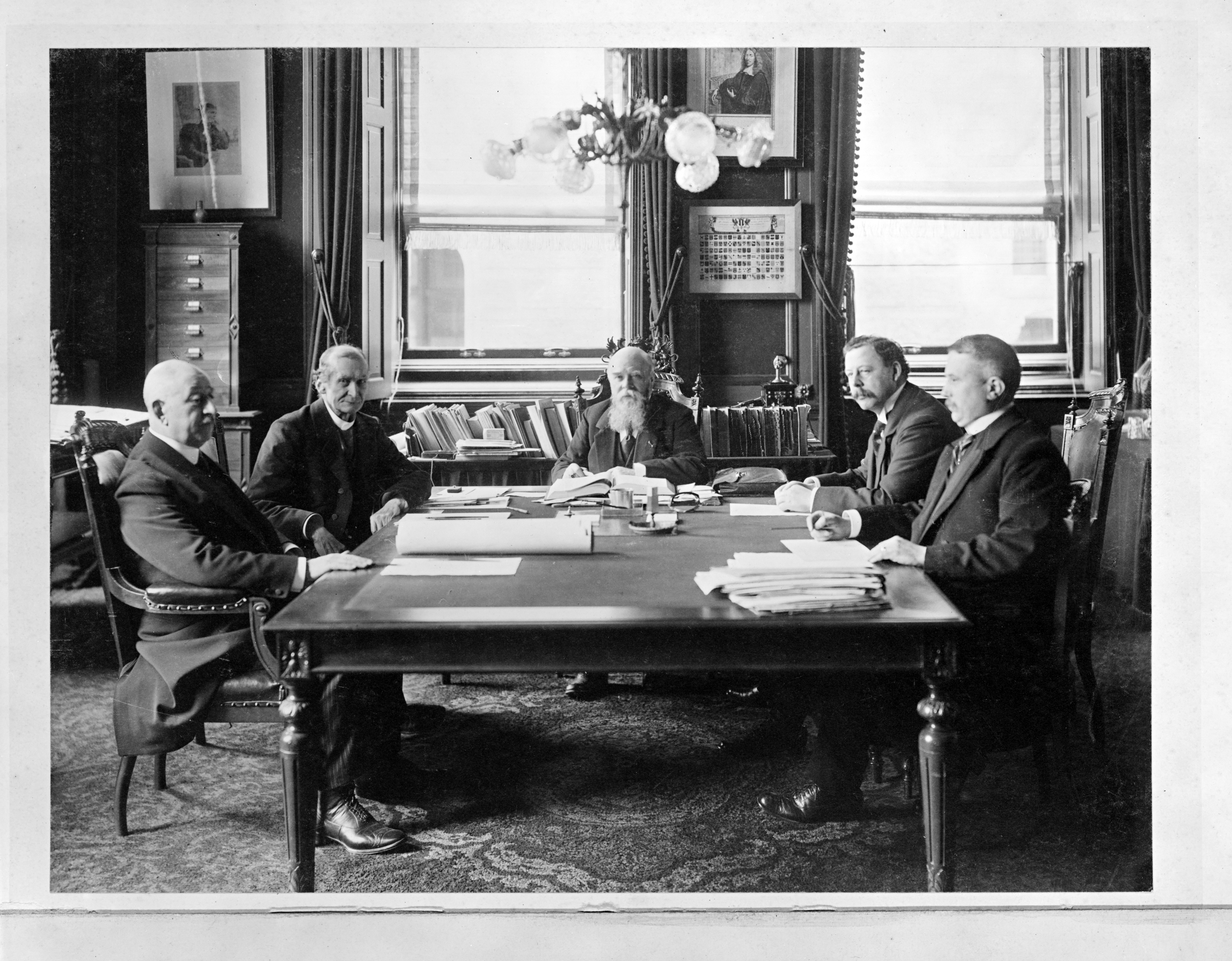 College van B & W. in de raadskamer van het stadhuis. V.l.n.r.: wethouders E. van der …