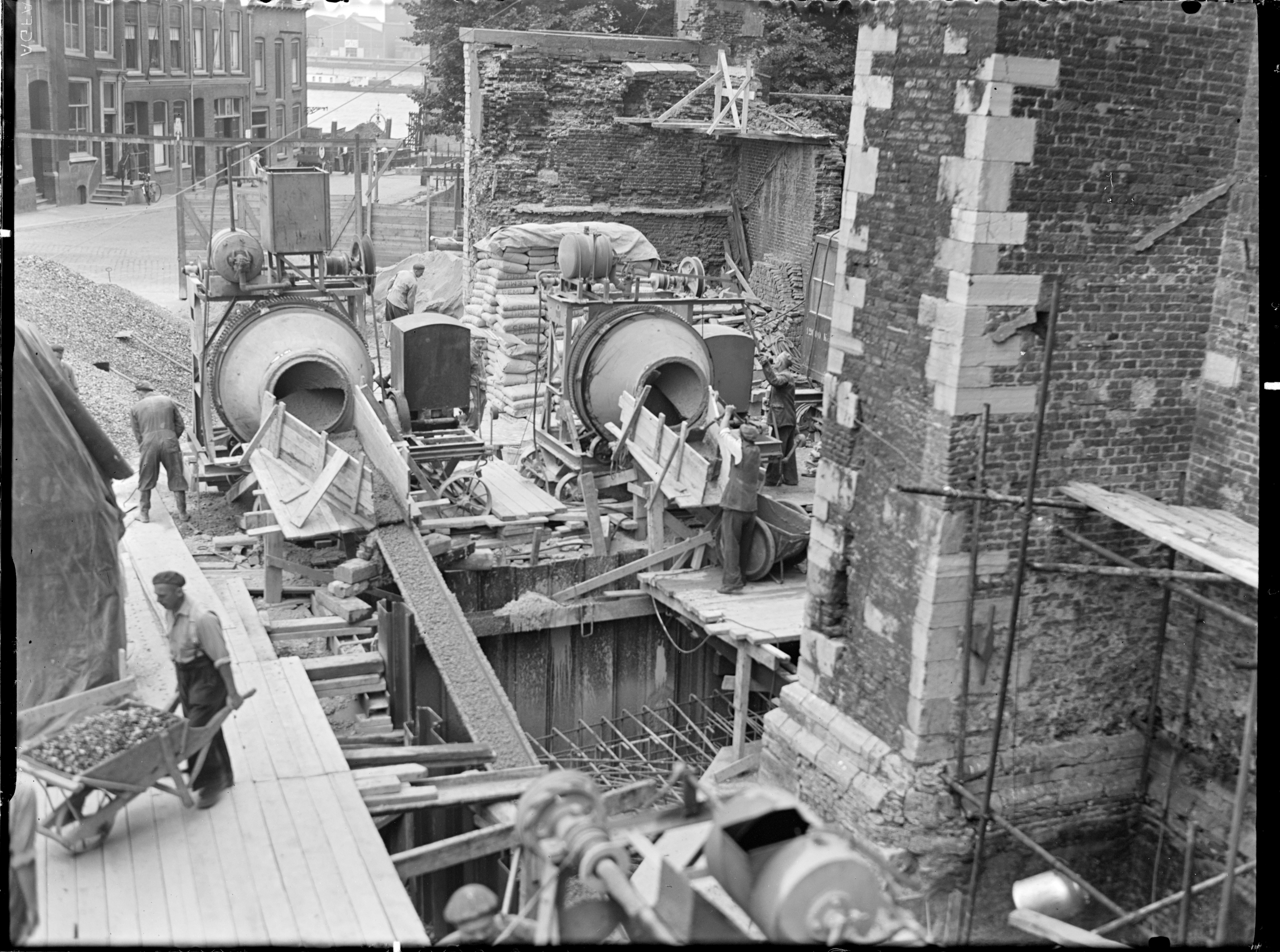 - arbeiders / werklieden betonmolens kerken kruiwagens restauraties