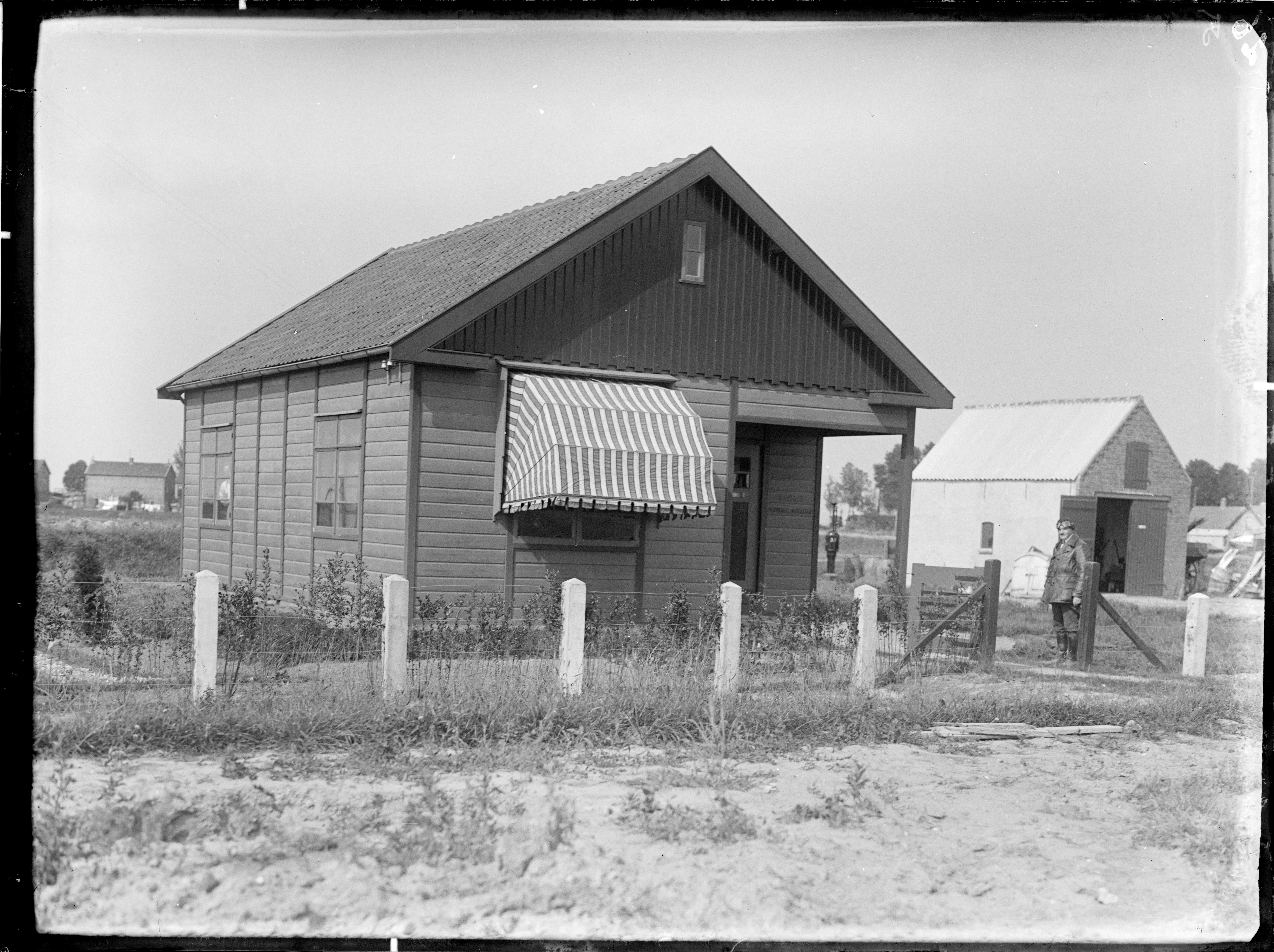 Houten kantoor van de Provinciale Waterstaat en schuur van oliehandel Schalekamp aan de …