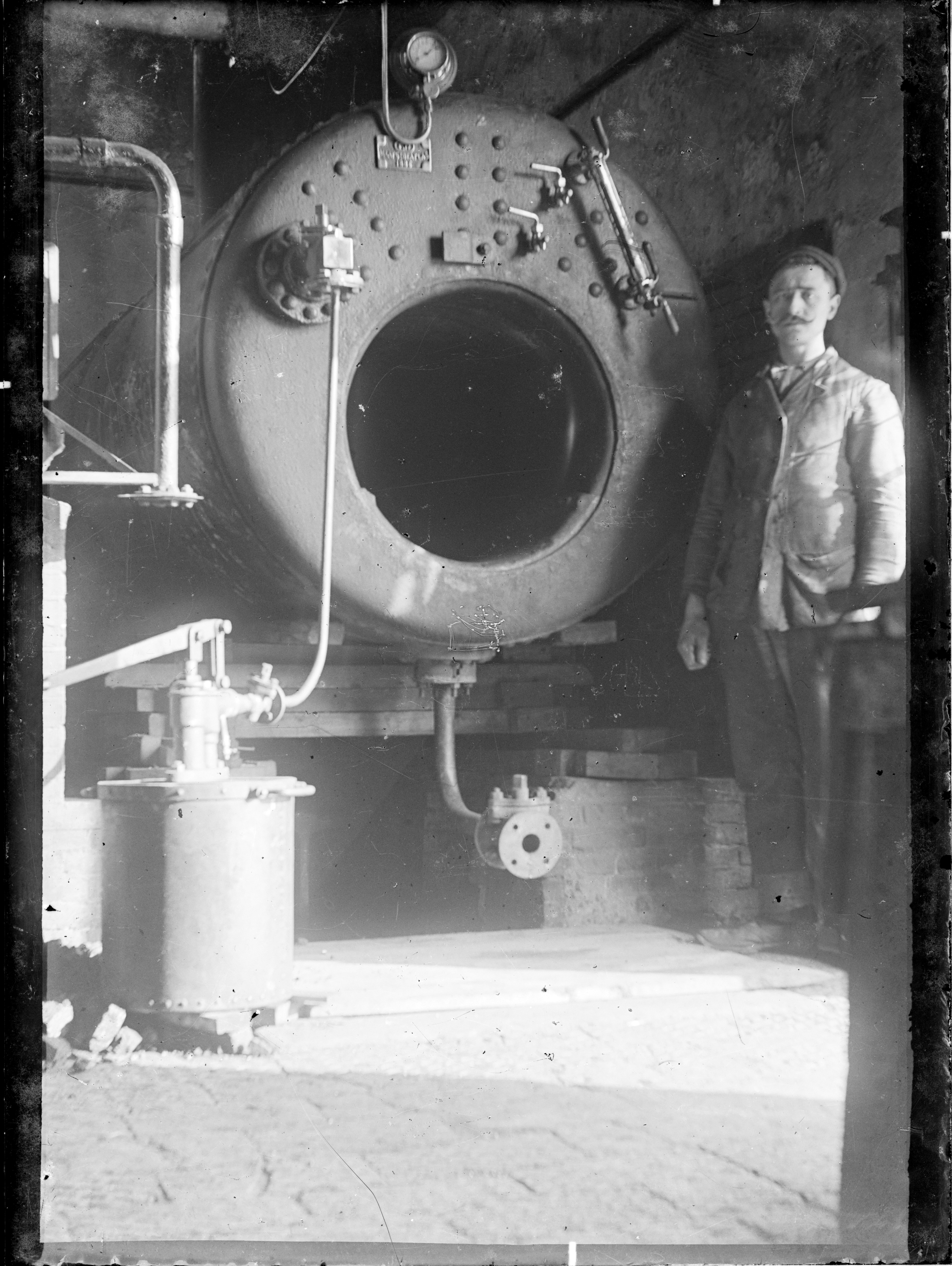 - Stoker bij de stoomketel van de watertoren aan de Rivierdijk in Sliedrecht.