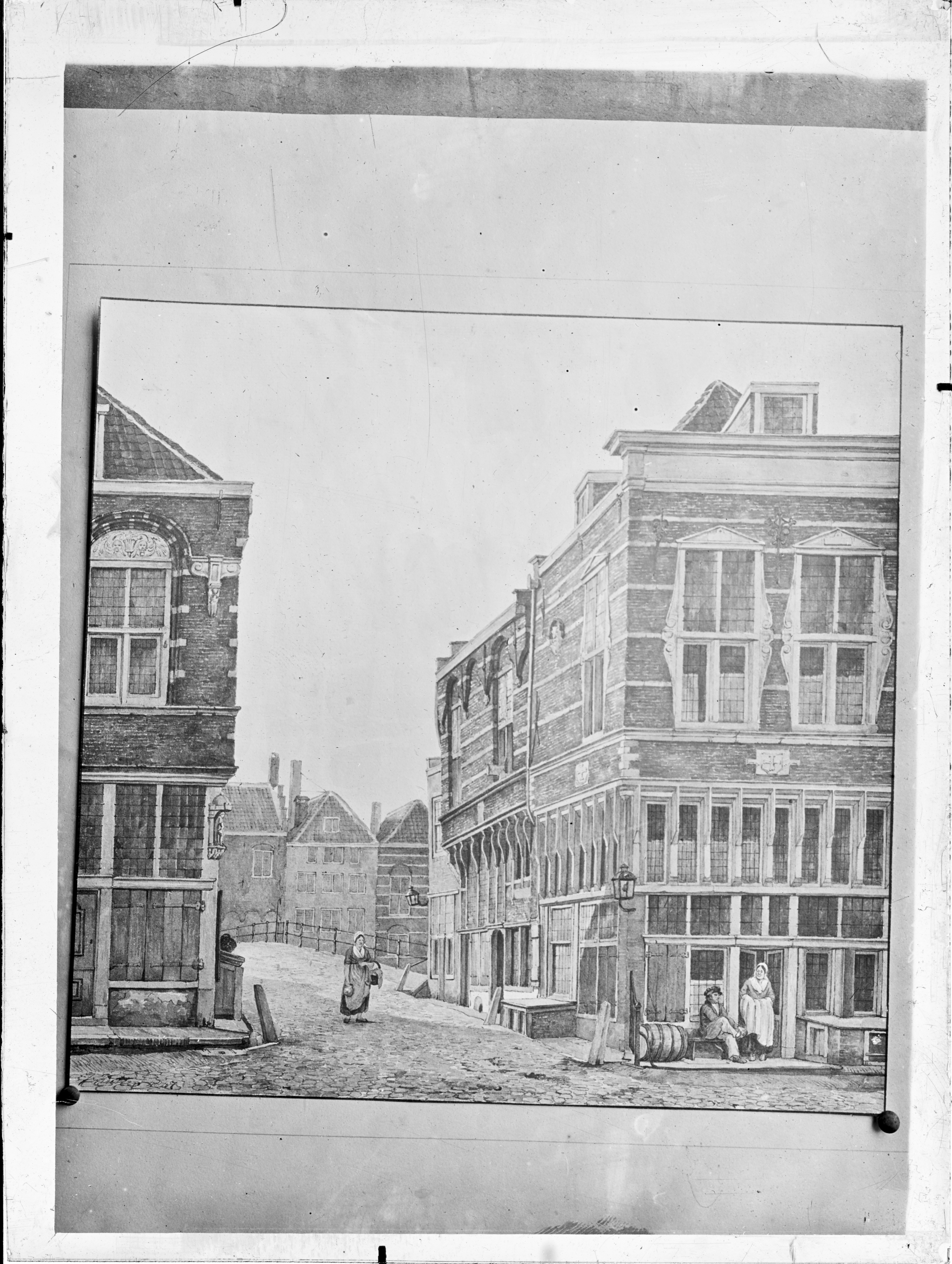 - De huizen Samson en 't Cruijs aan de Nieuwbrug, hoek Voorstraat. De panden zijn afgebroken in 1847. Tekening in kleur door J. Rutten (37,5x39 cm)