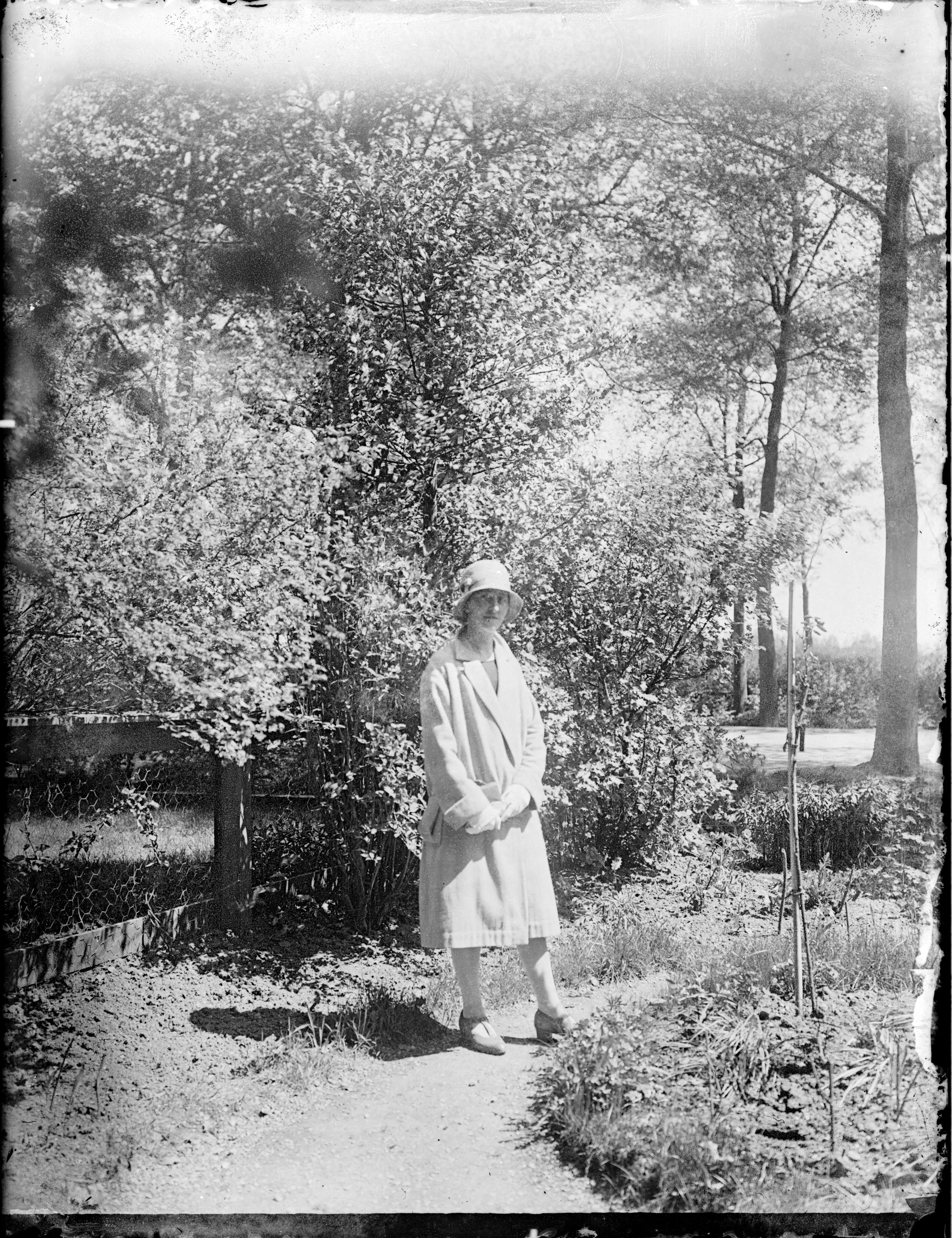 - Bewoonster in de voortuin van haar woning aan de Stationsweg in Sliedrecht.