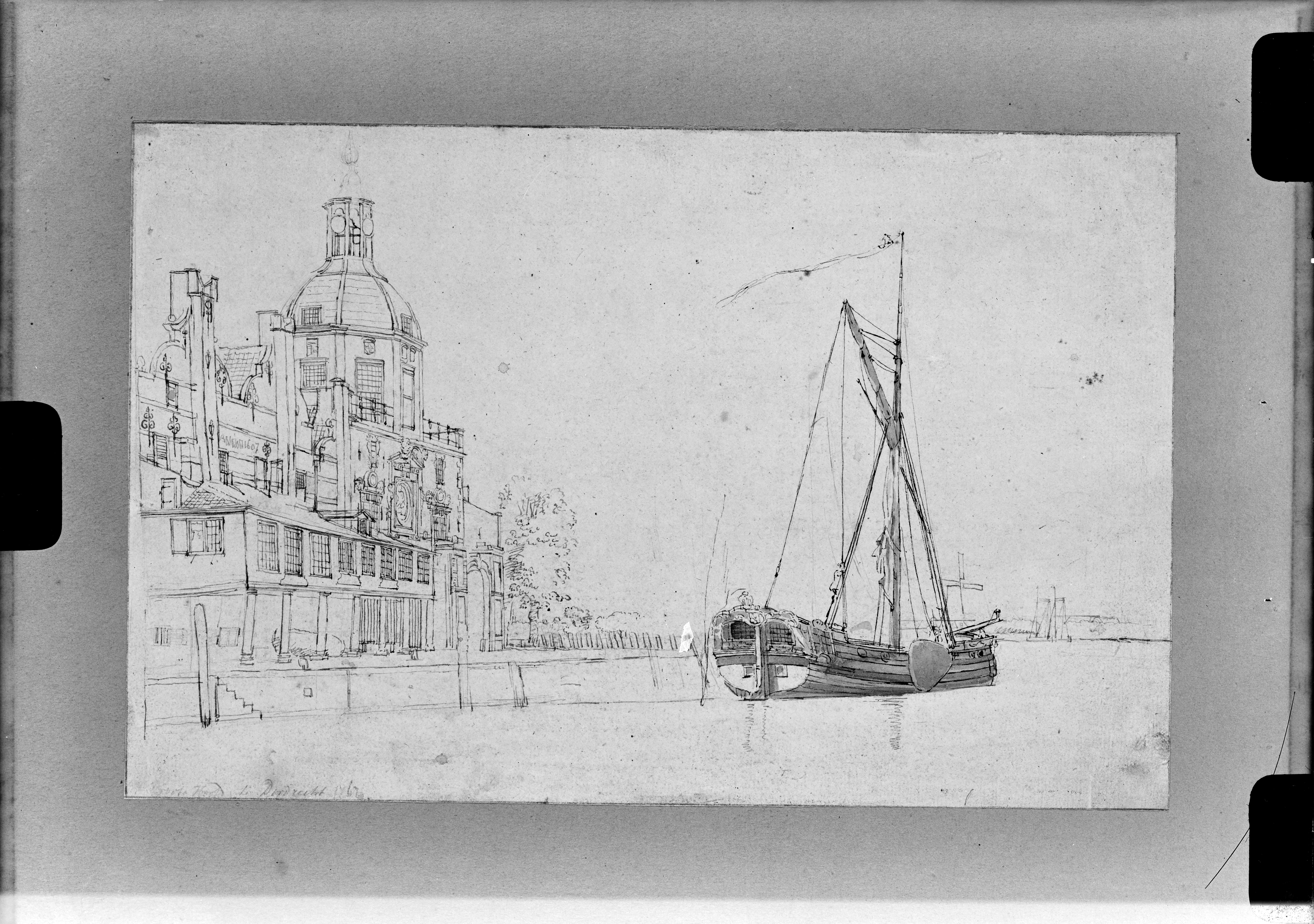- Tekening van de Groothoofdspoort aan de zijde van het Groothoofd.