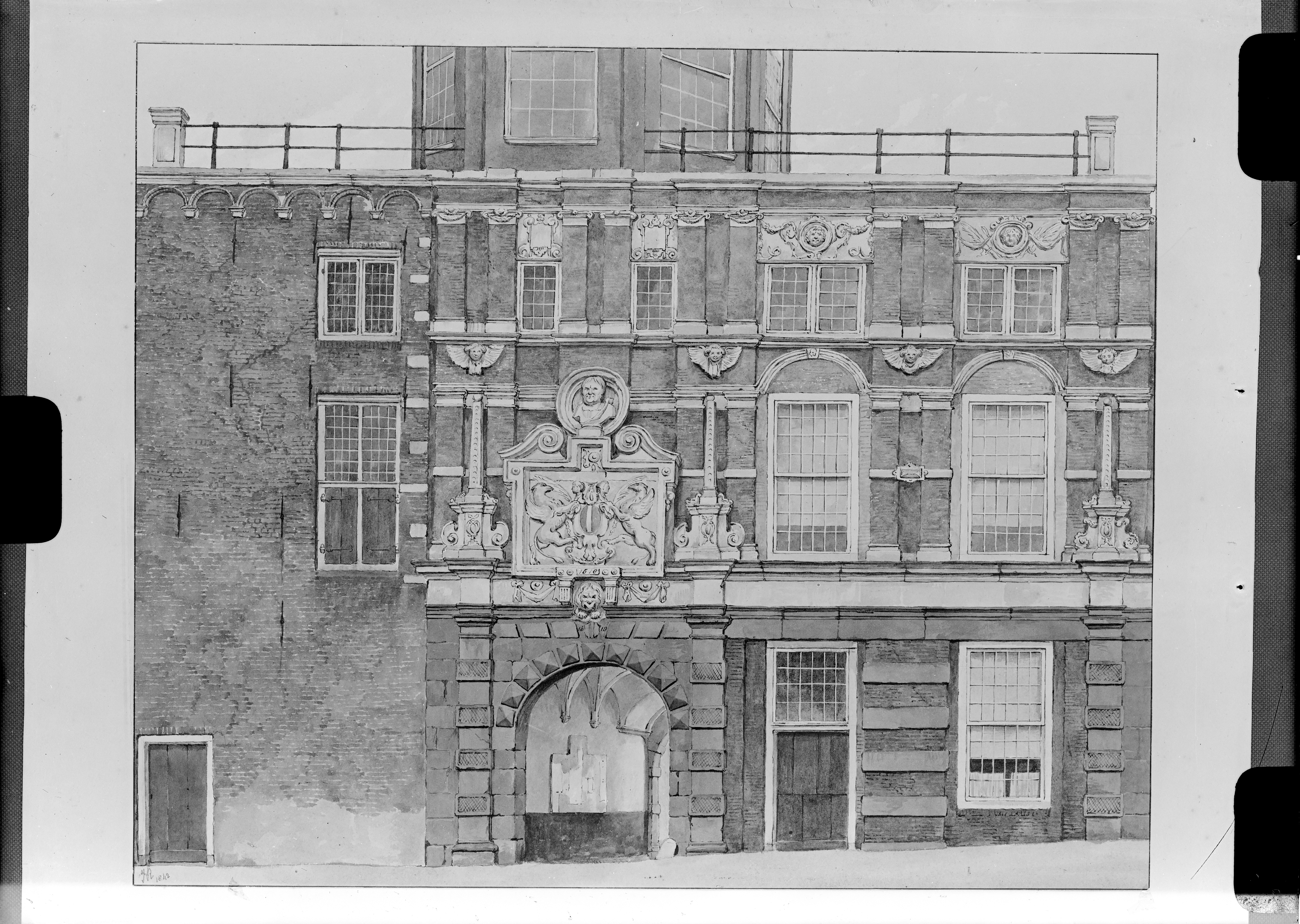 Tekening van de Groothoofdpoort aan de zijde van de Boomstraat.