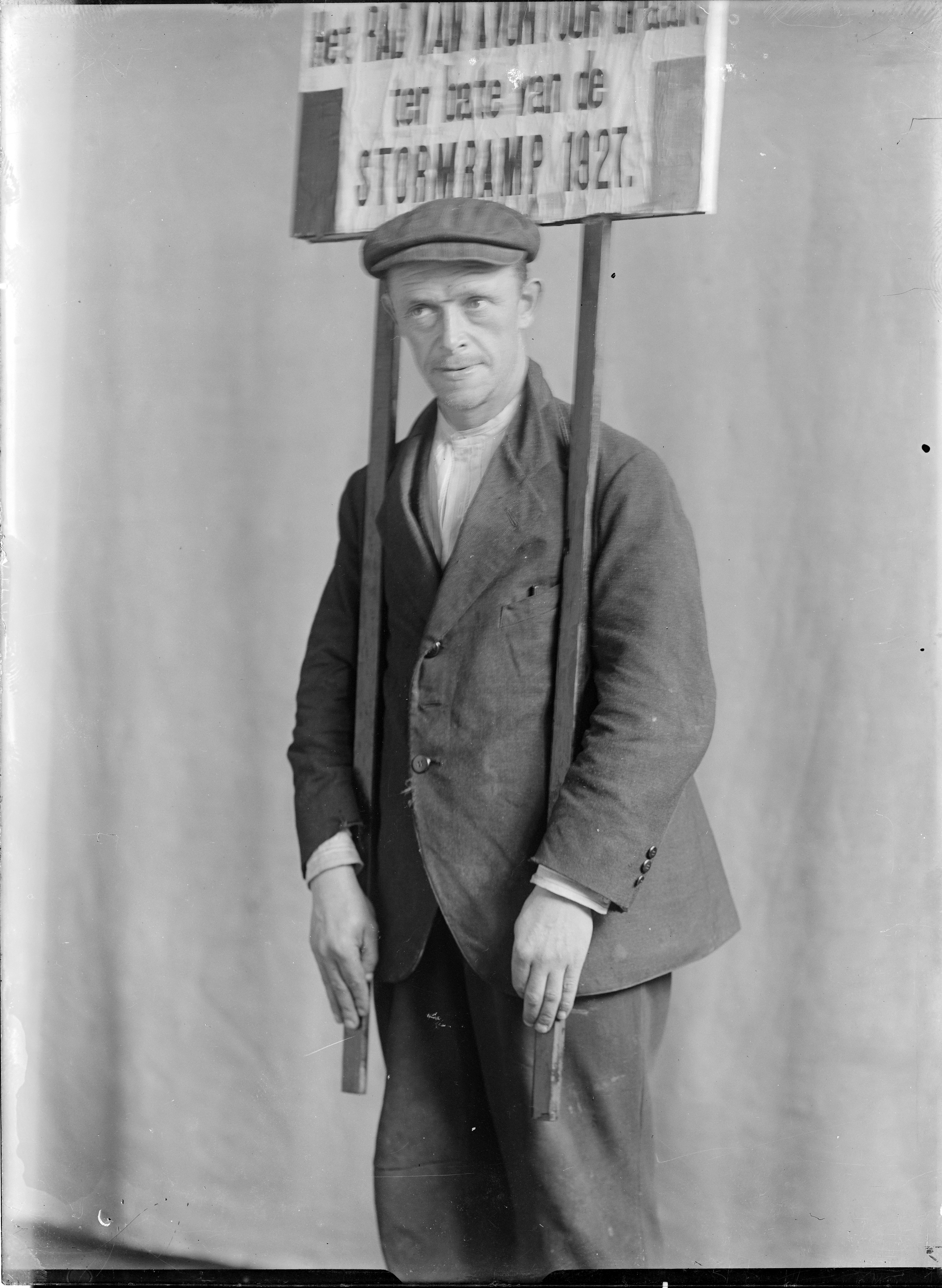 - Aankondiging van het rad van avontuur tijdens de Dordtsche Internationale Tentoonstelling Op Bakkerijgebied (DITOB) in schouwburg Kunstmin ten bate van de stormramp.
