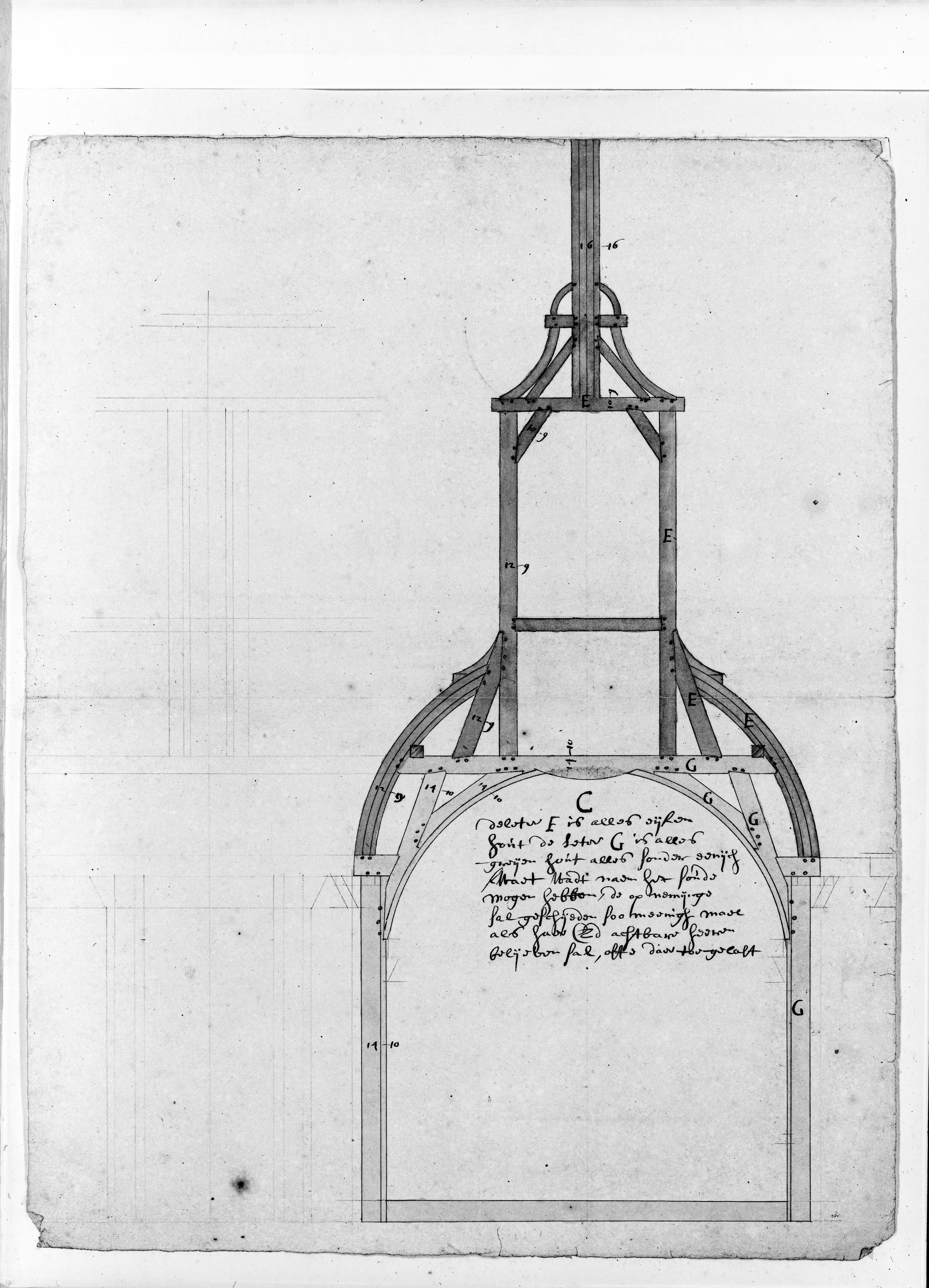 - Bouwtekening van de toren van de Groothoofdspoort.
