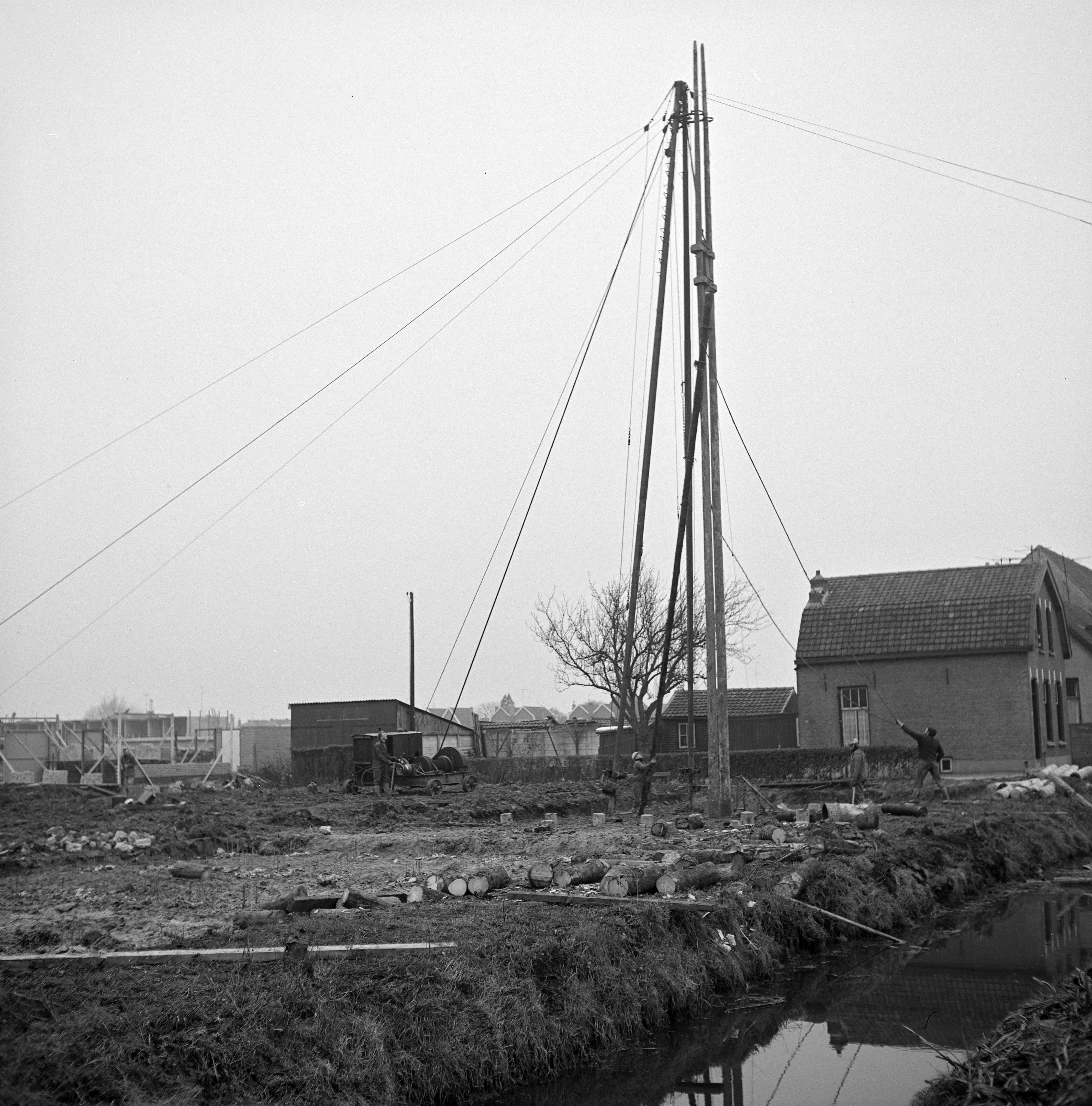 Een heistelling op een bouwplaats aan de Haaswijkweg Oost.