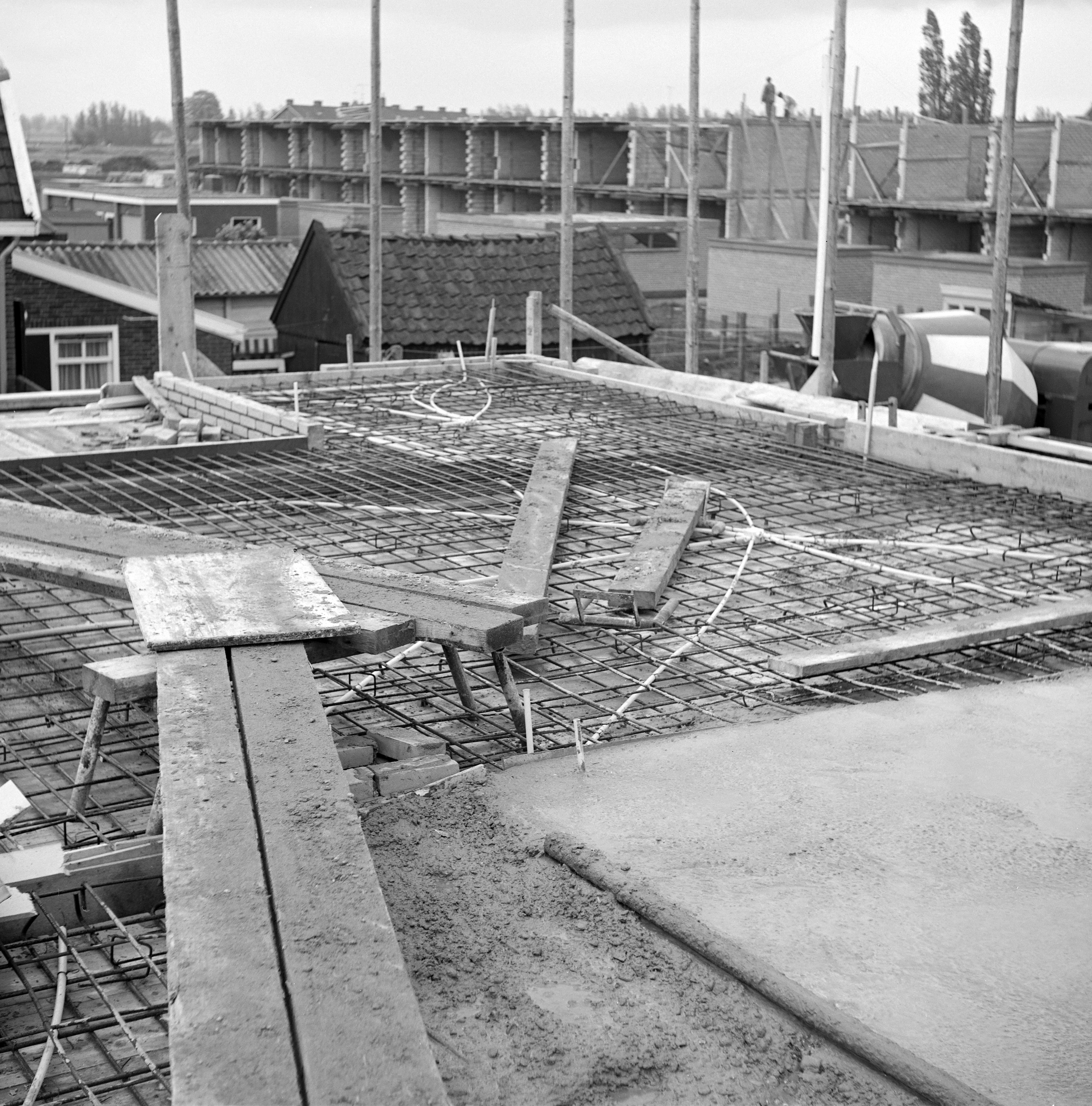 - Vooraan huizen in aanbouw aan de Haaswijkweg Oost, op de achtergrond in de Laurierstraat.