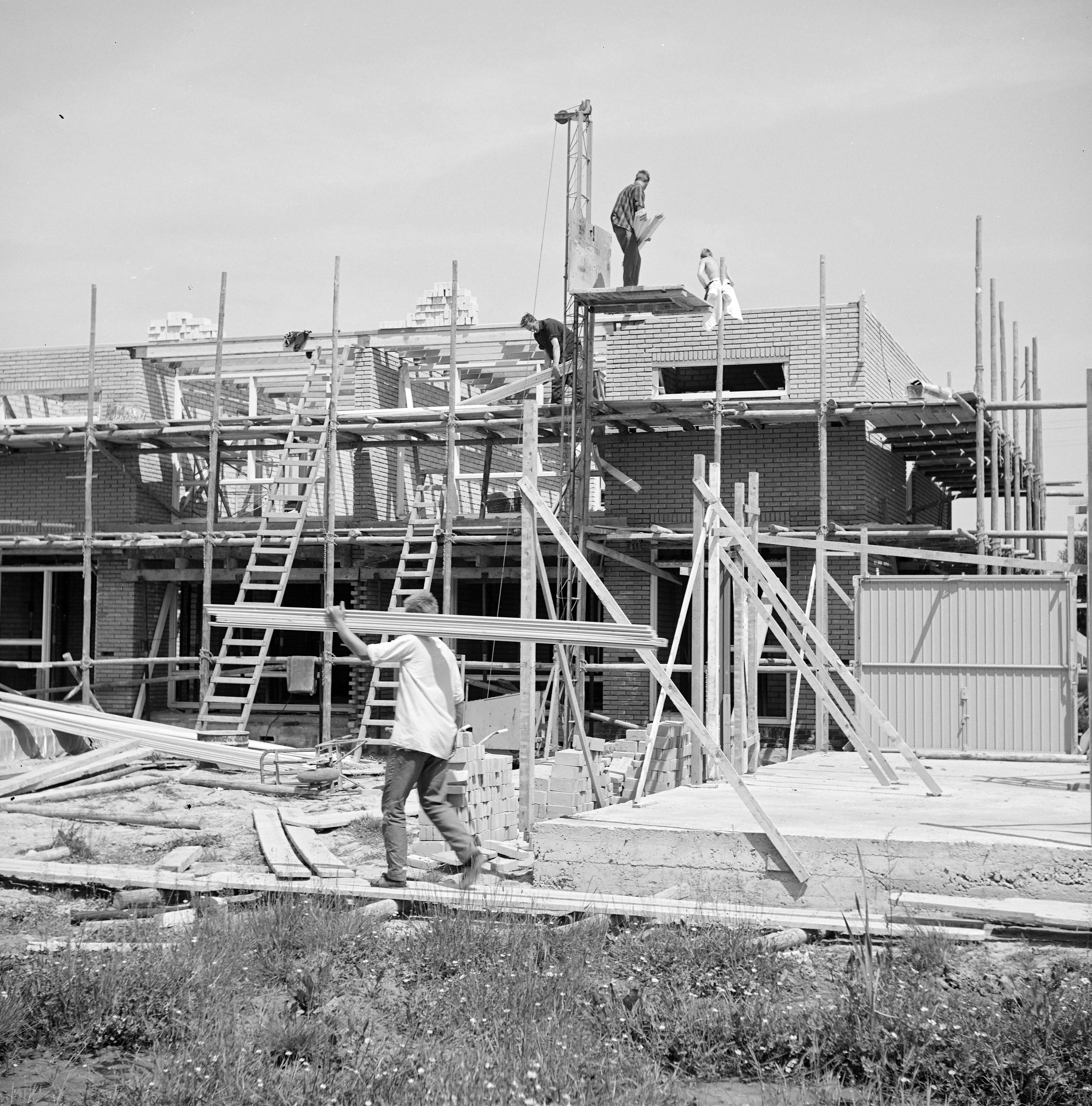 - Huizen in aanbouw op bouwplaats Haaswijkweg Oost.