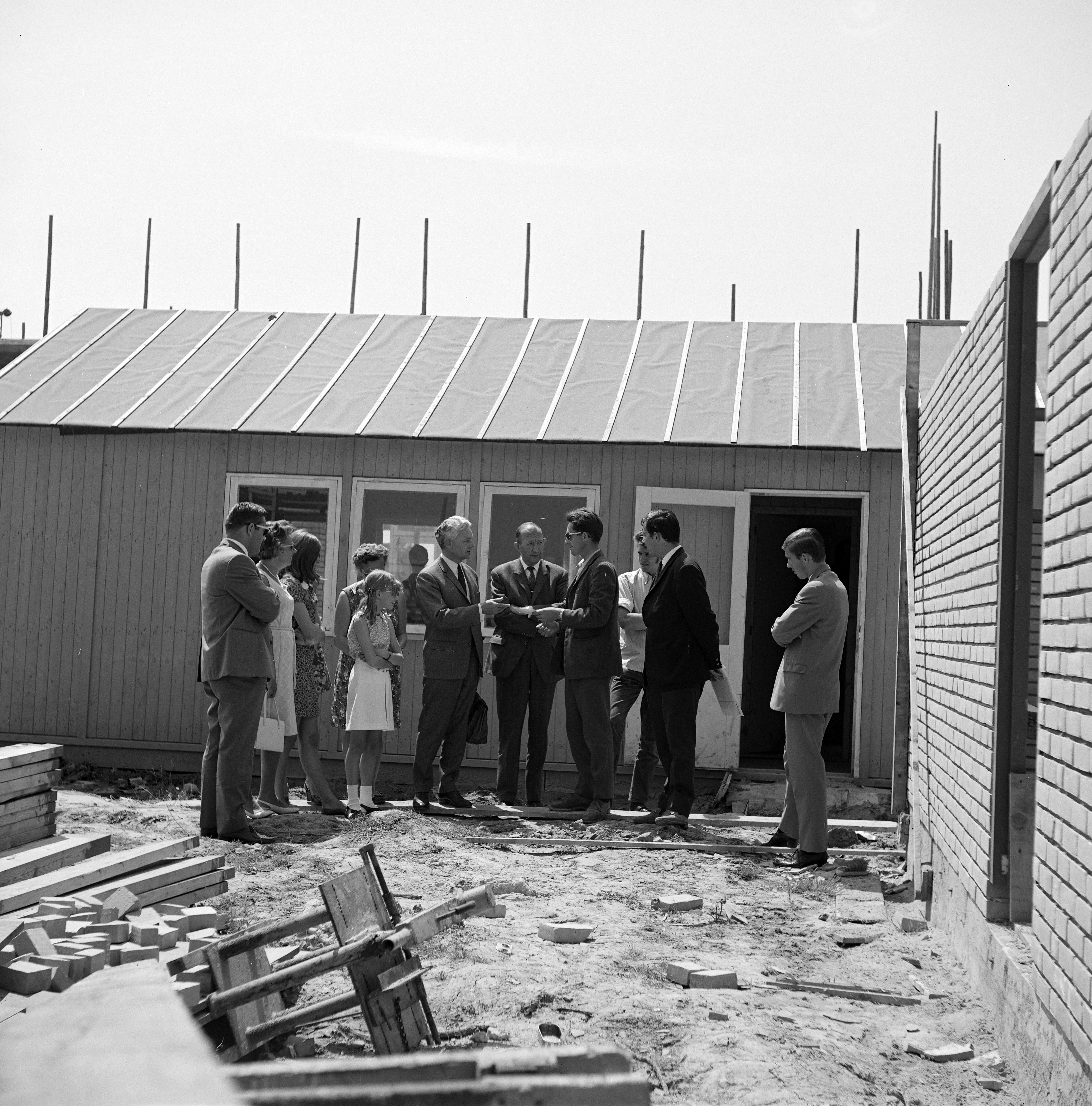 Overleg met kandiaat-bewoners van huizen in aanbouw op bouwplaats Haaswijkweg Oost en …