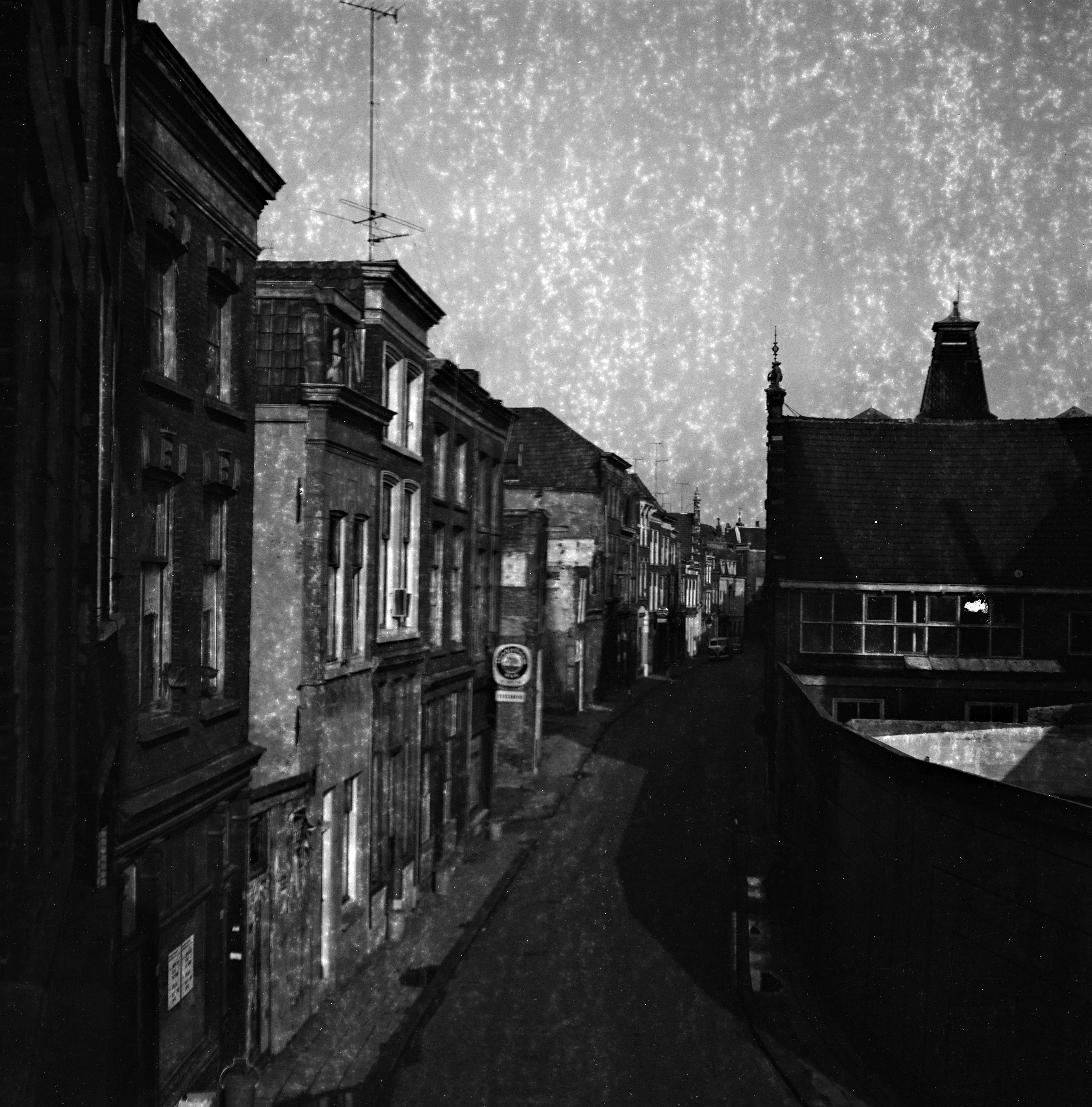 - De Riedijk in de richting van de Voorstraat. Het torentje rechts is van de gasfabriek.