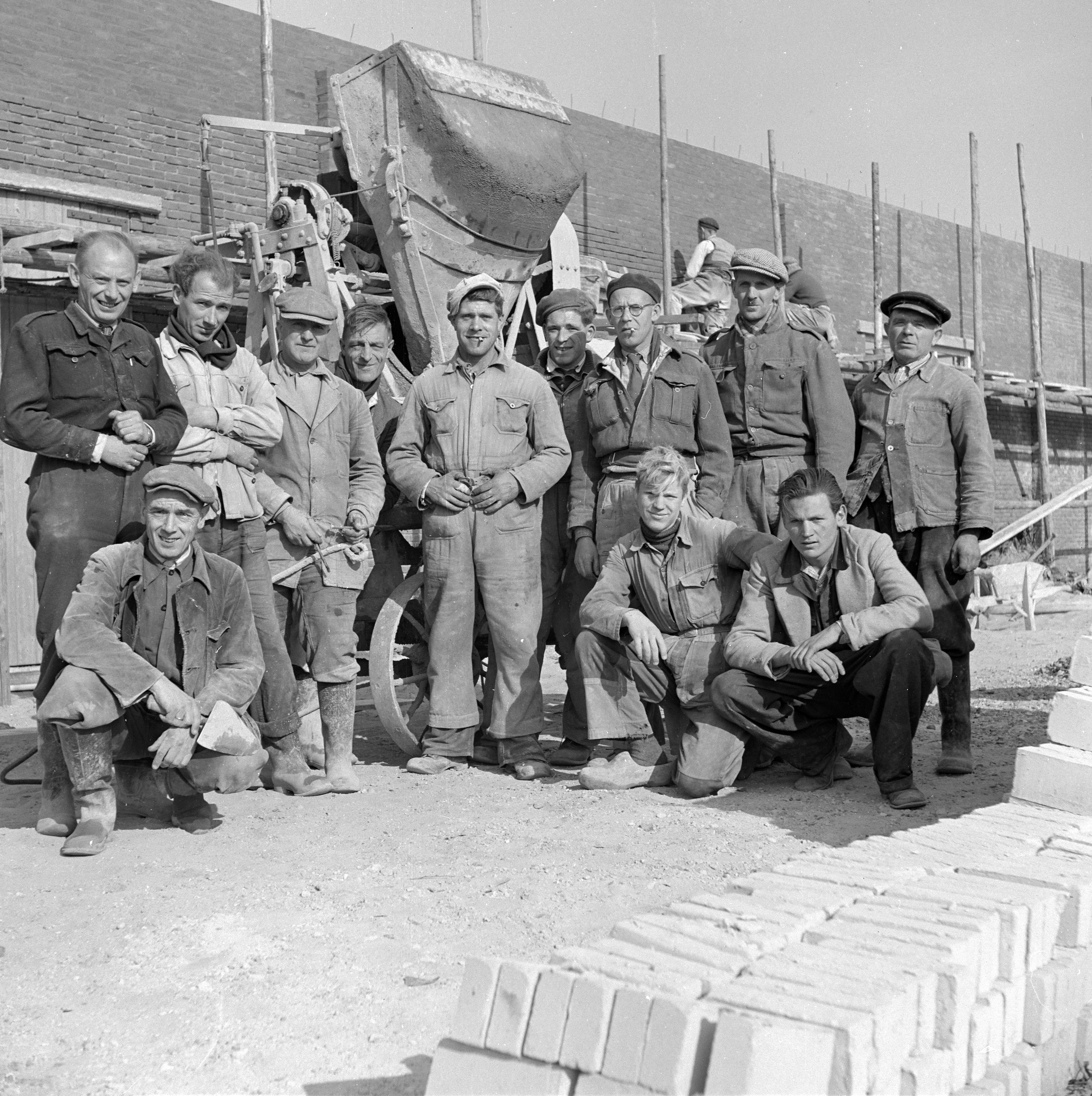 Personeel van fa. Van Wijnen, aannemer, bij werkzaamheden in Crabbehof.