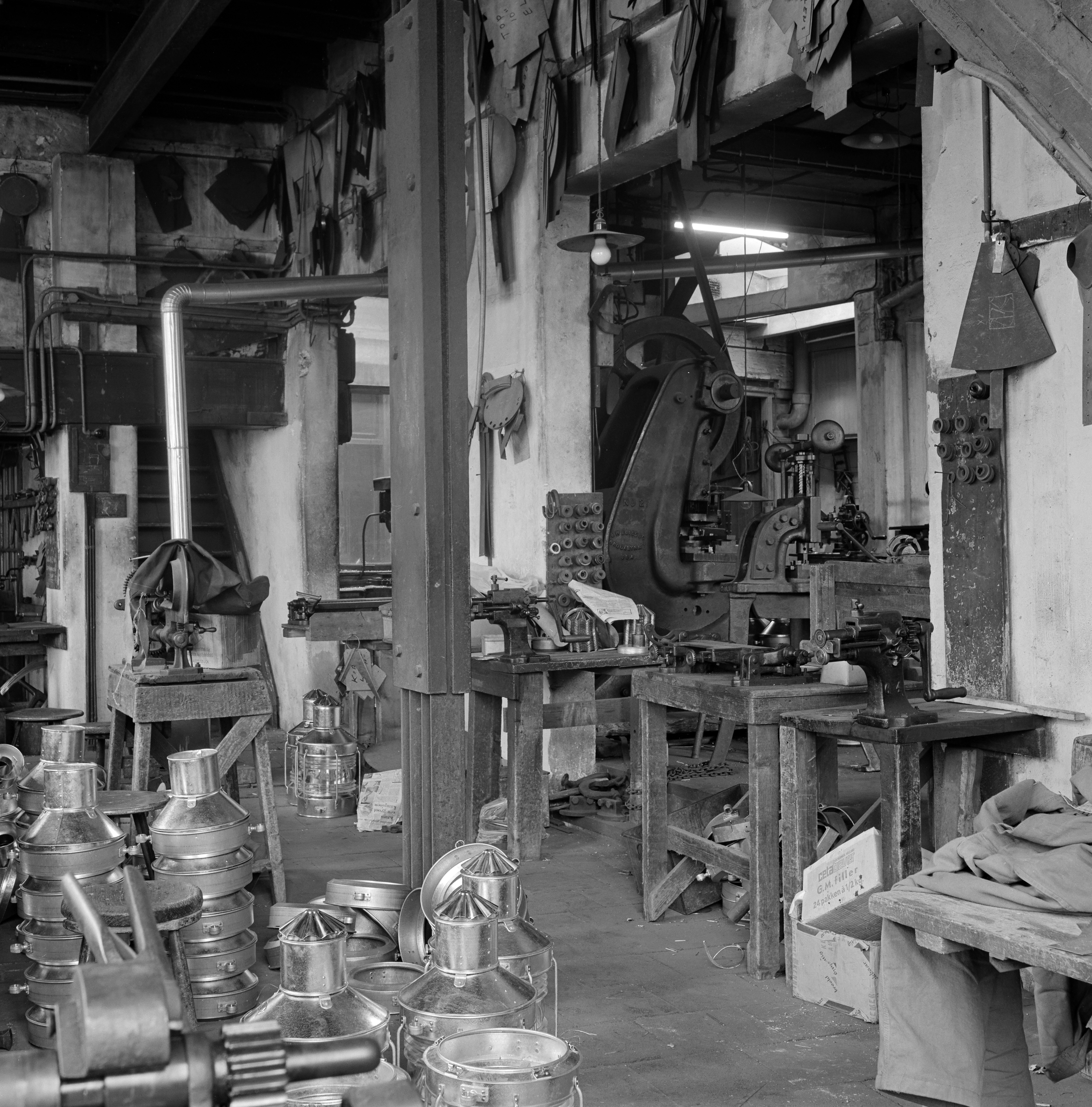 Interieur van koper- en blikslagerij Zock aan de Bleijenhoek.
