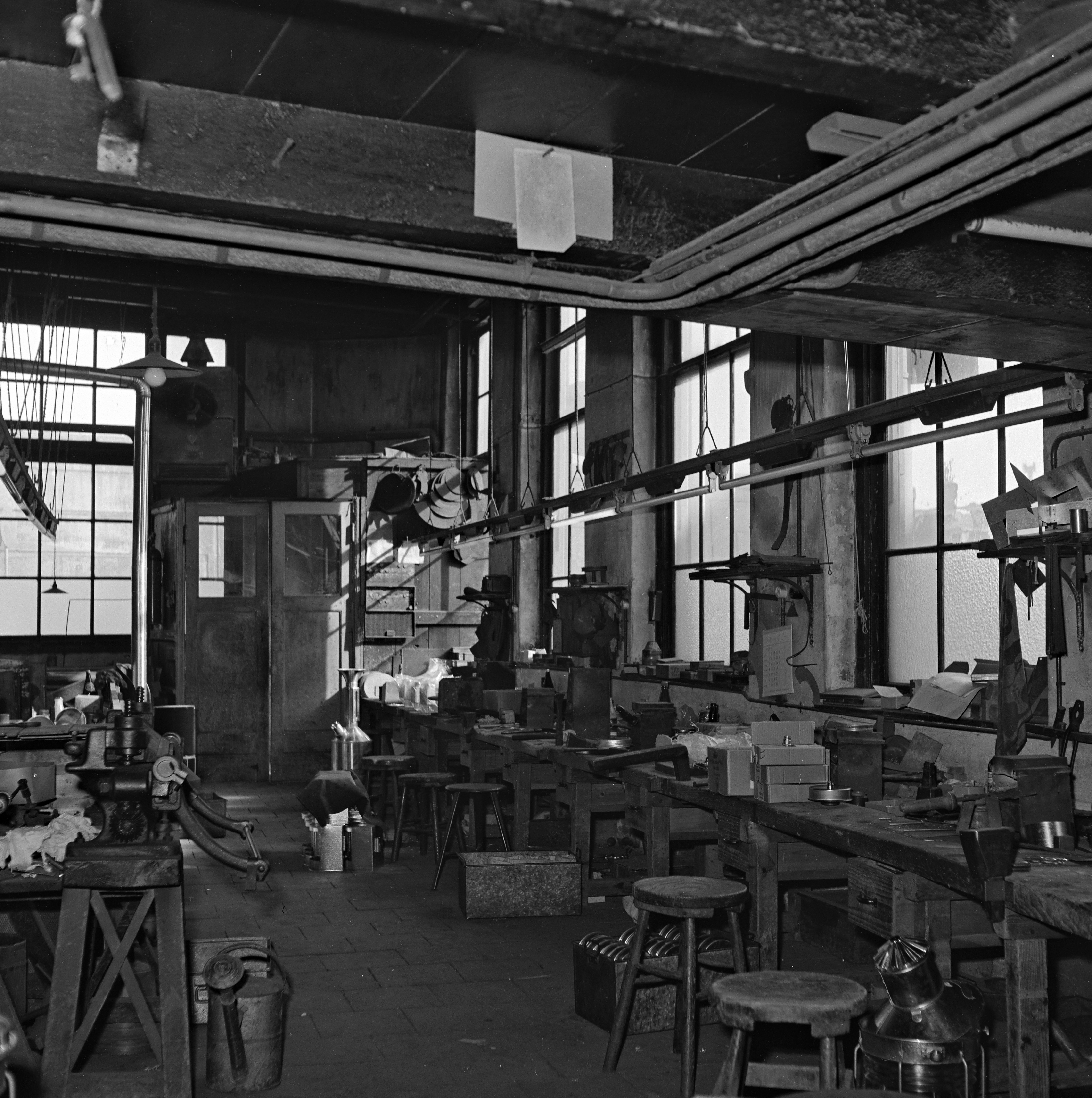 - Interieur van koper- en blikslagerij Zock aan de Bleijenhoek.
