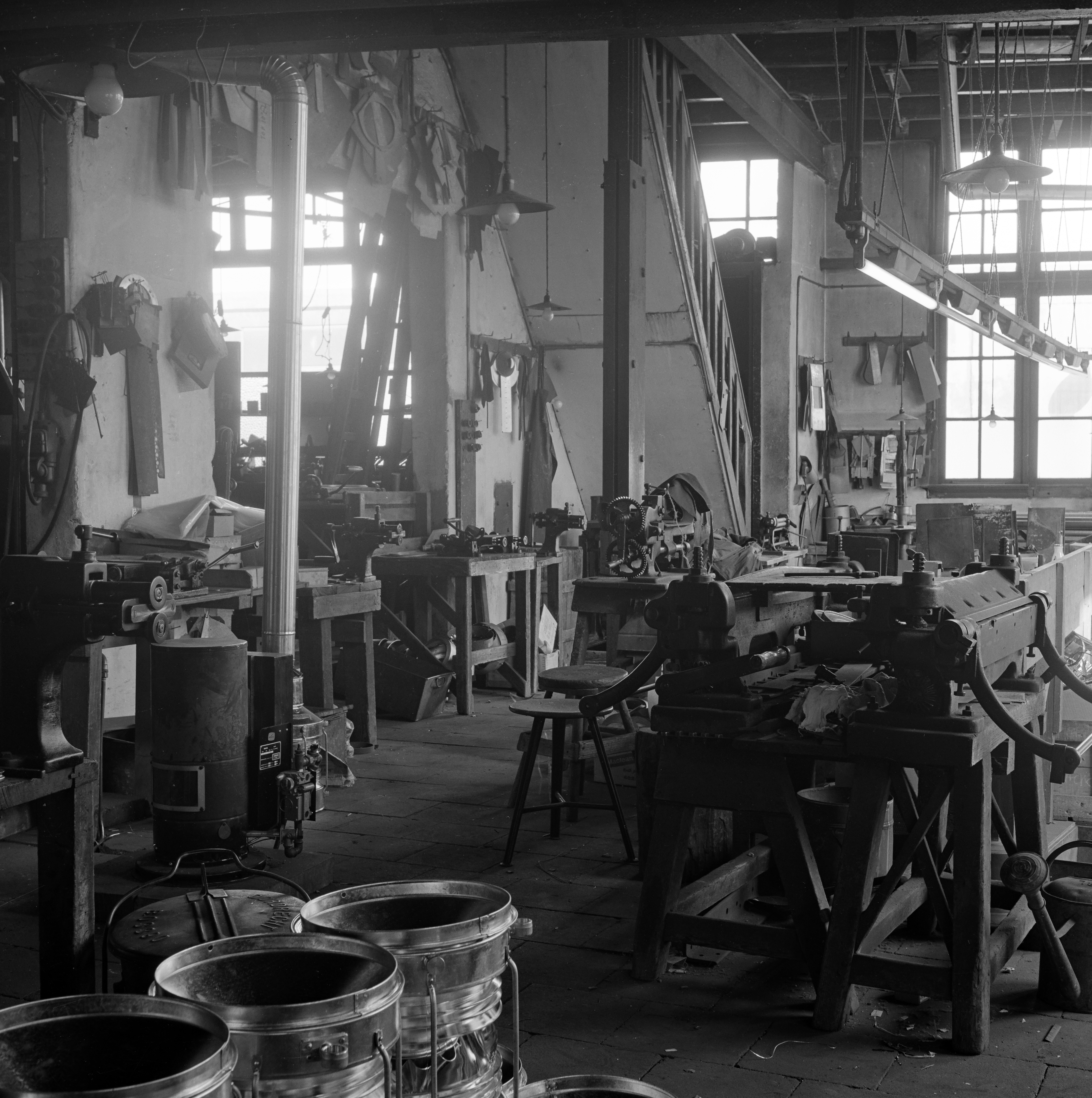 Interieur van koper- en blikslagerij Zock aan de Bleijenhoek.