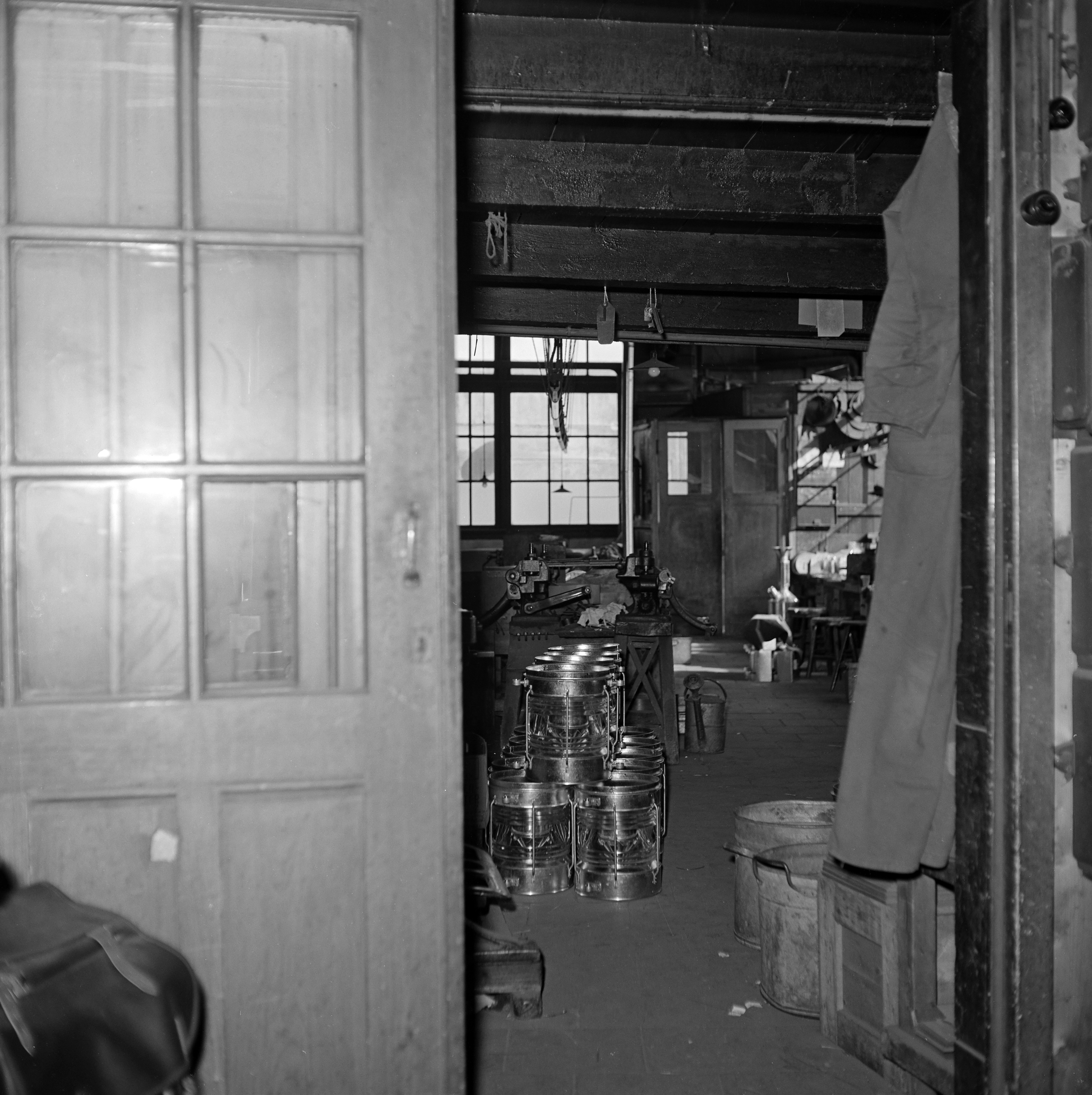 - Interieur van koper- en blikslagerij Zock aan de Bleijenhoek.