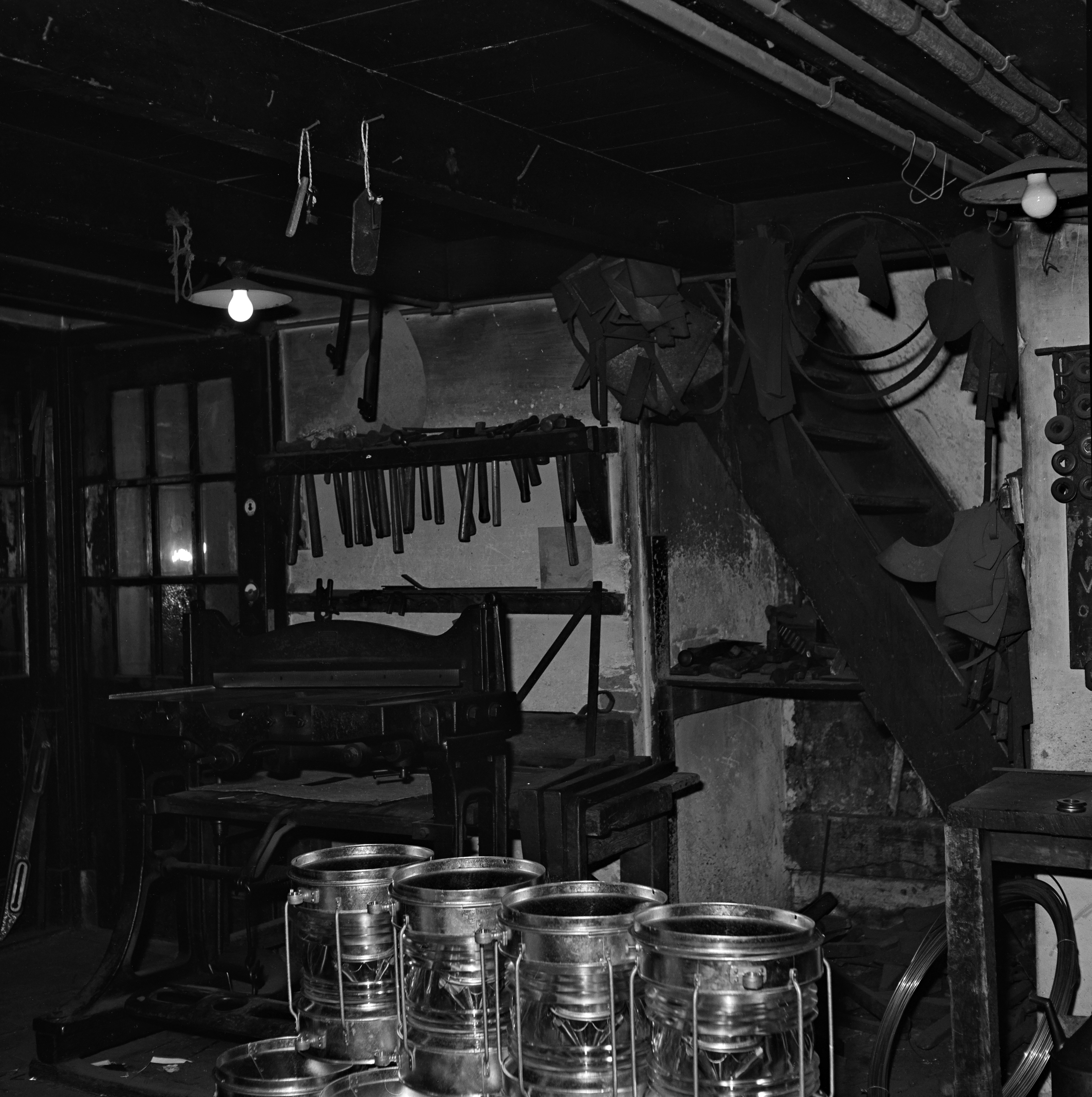 Interieur van koper- en blikslagerij Zock aan de Bleijenhoek.