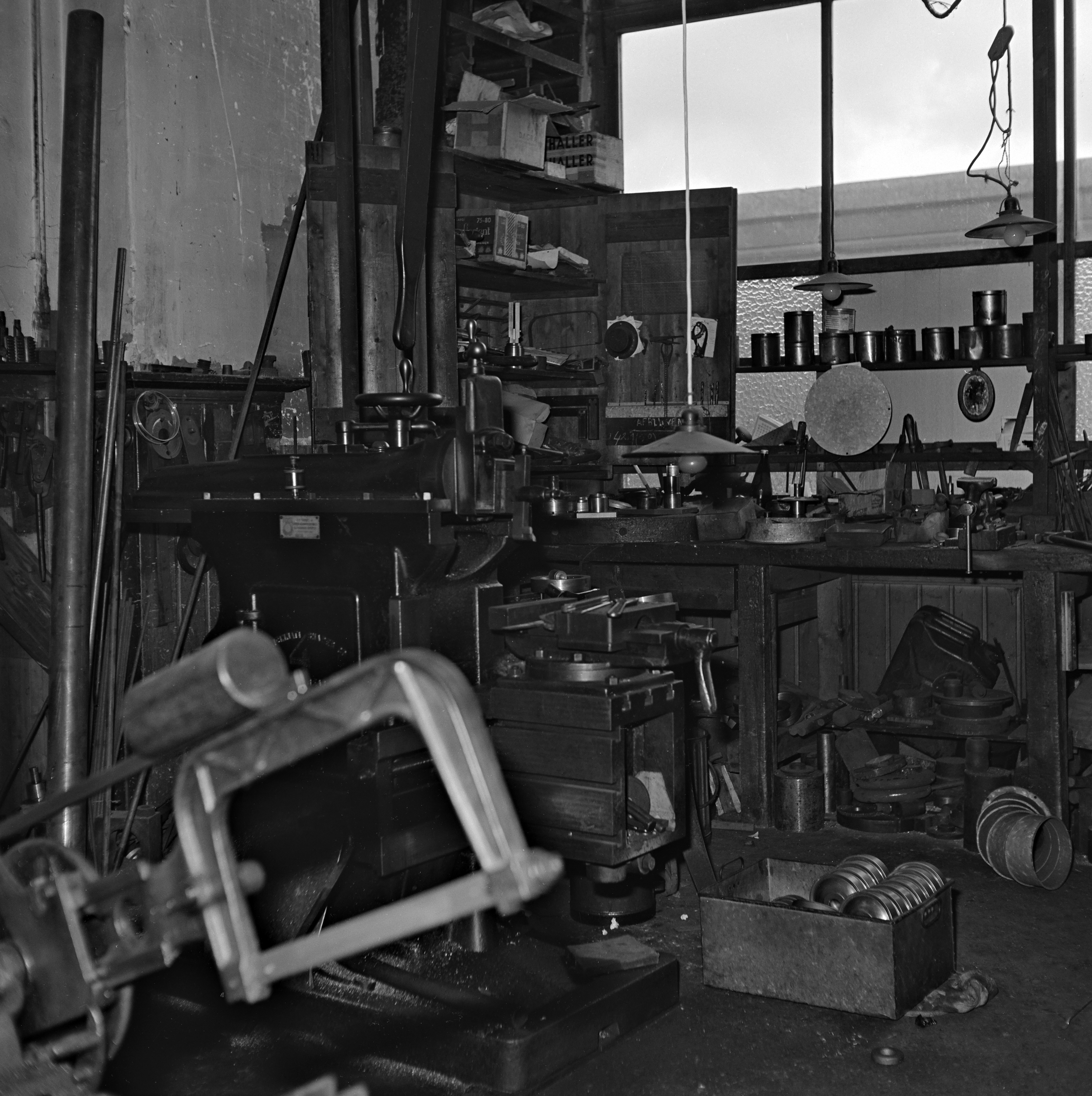 Interieur van koper- en blikslagerij Zock aan de Bleijenhoek.