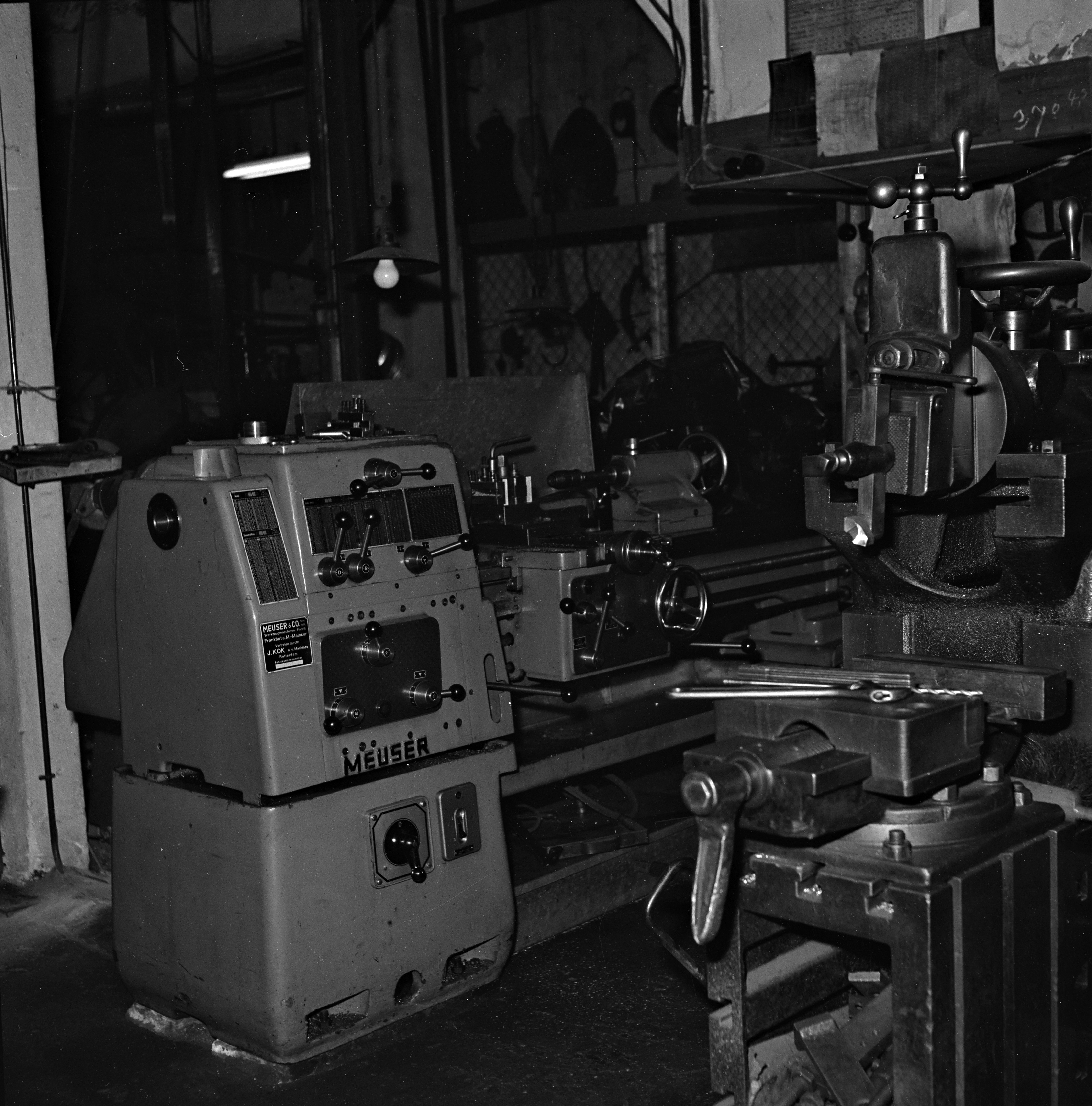 Interieur met Meuser draaibank van koper- en blikslagerij Zock aan de Bleijenhoek.