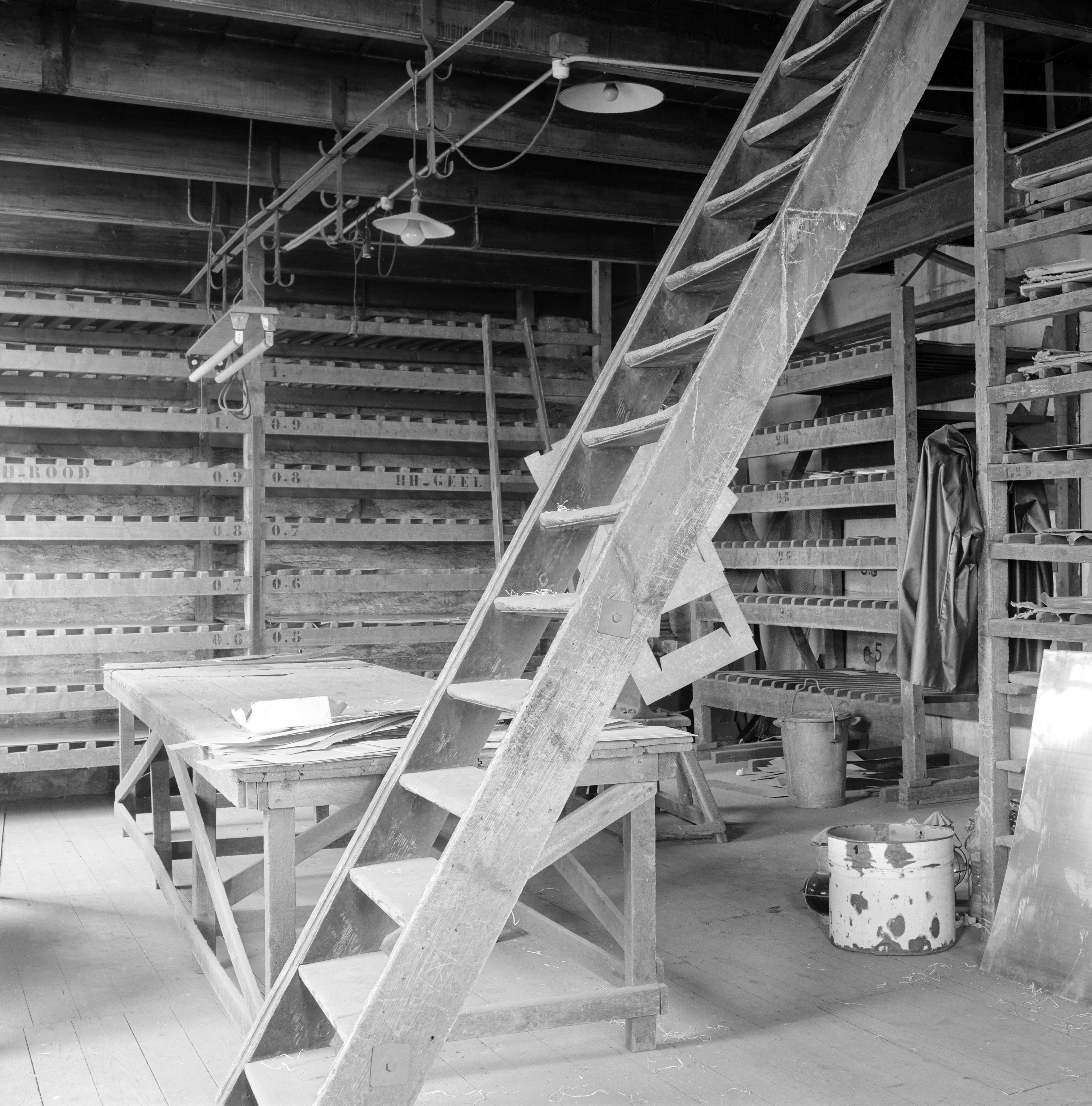 - Interieur van koper- en blikslagerij Zock aan de Bleijenhoek.