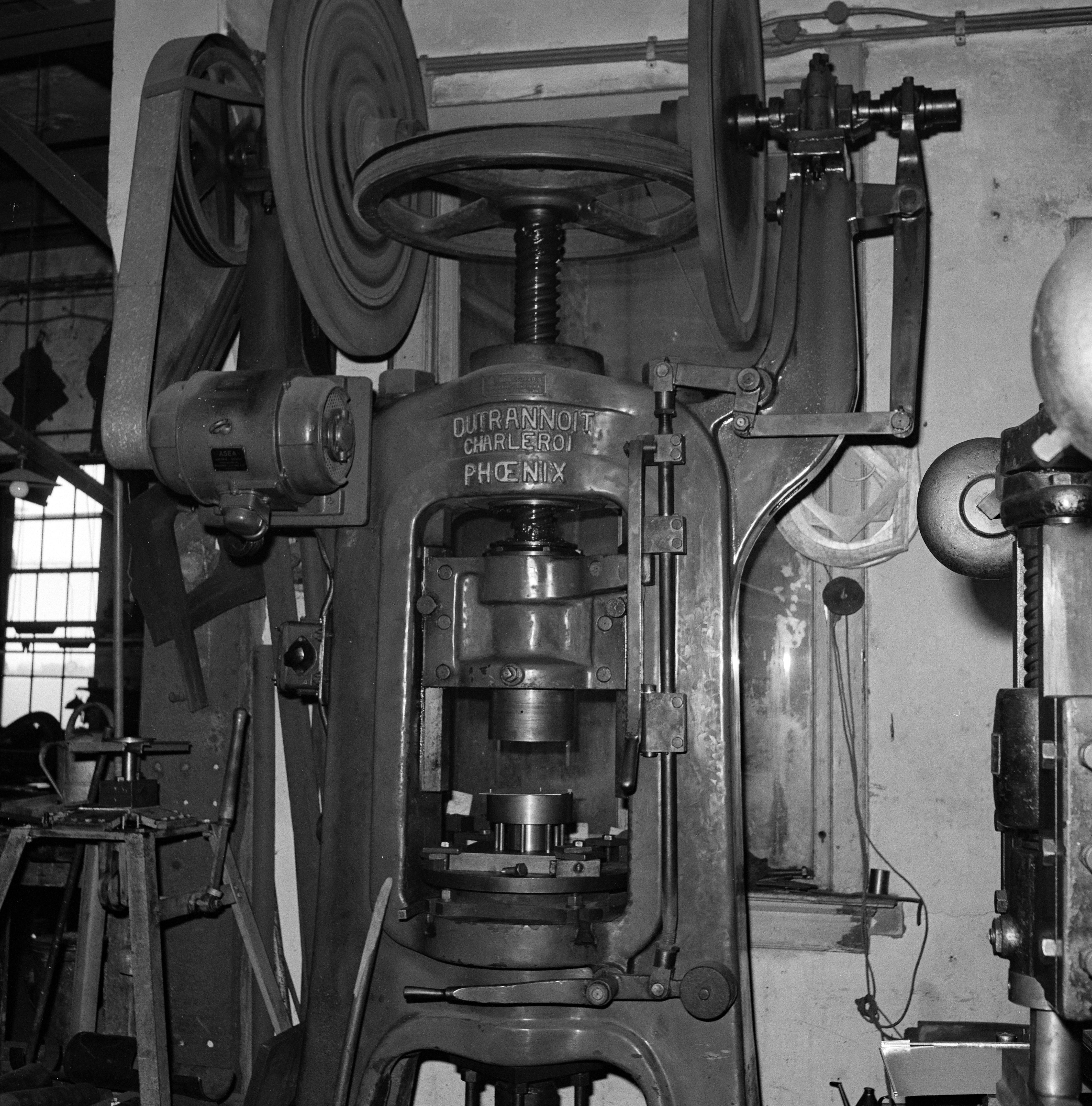 Interieur van koper- en blikslagerij Zock aan de Bleijenhoek.