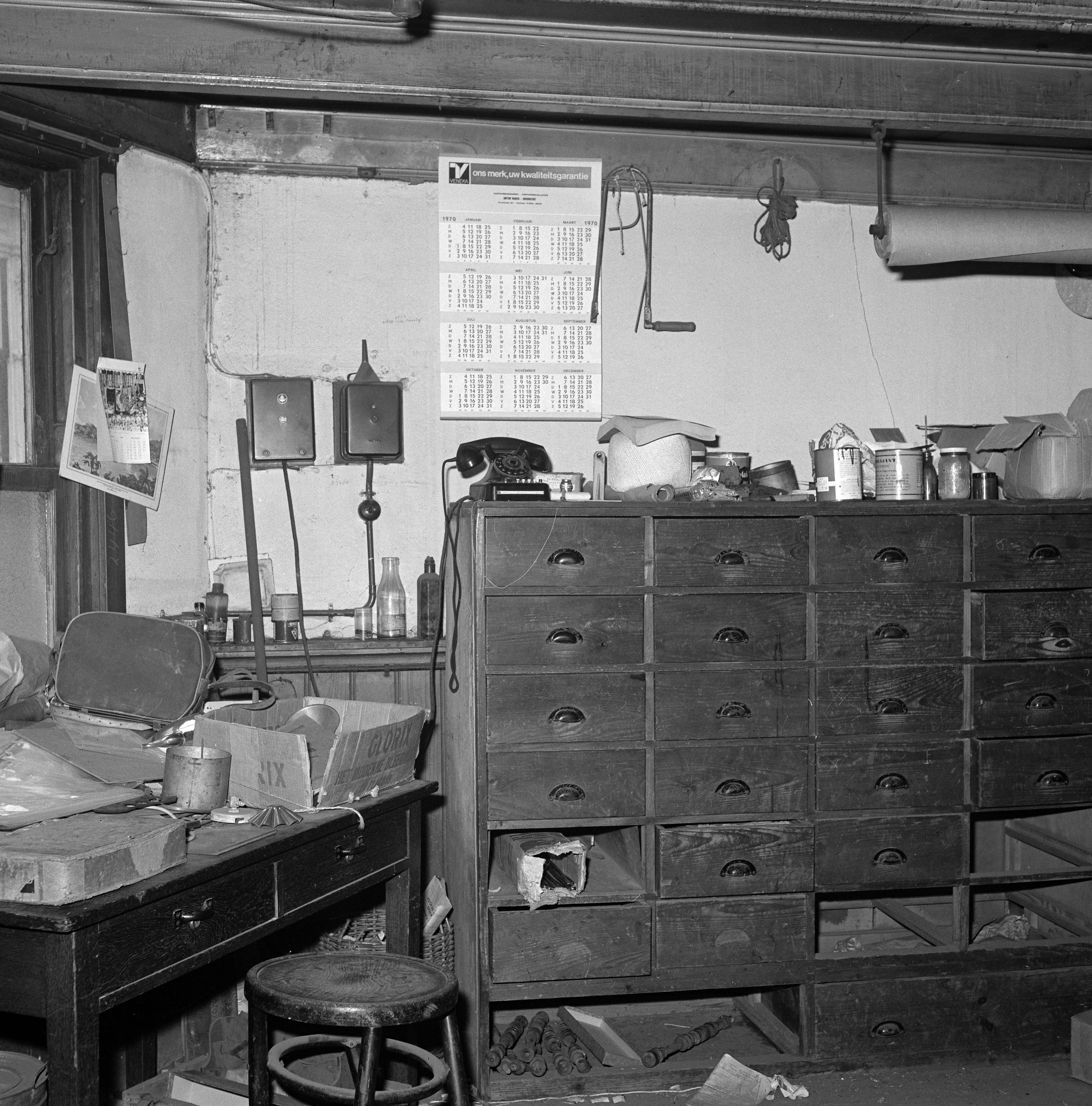 - Interieur van koper- en blikslagerij Zock aan de Bleijenhoek.