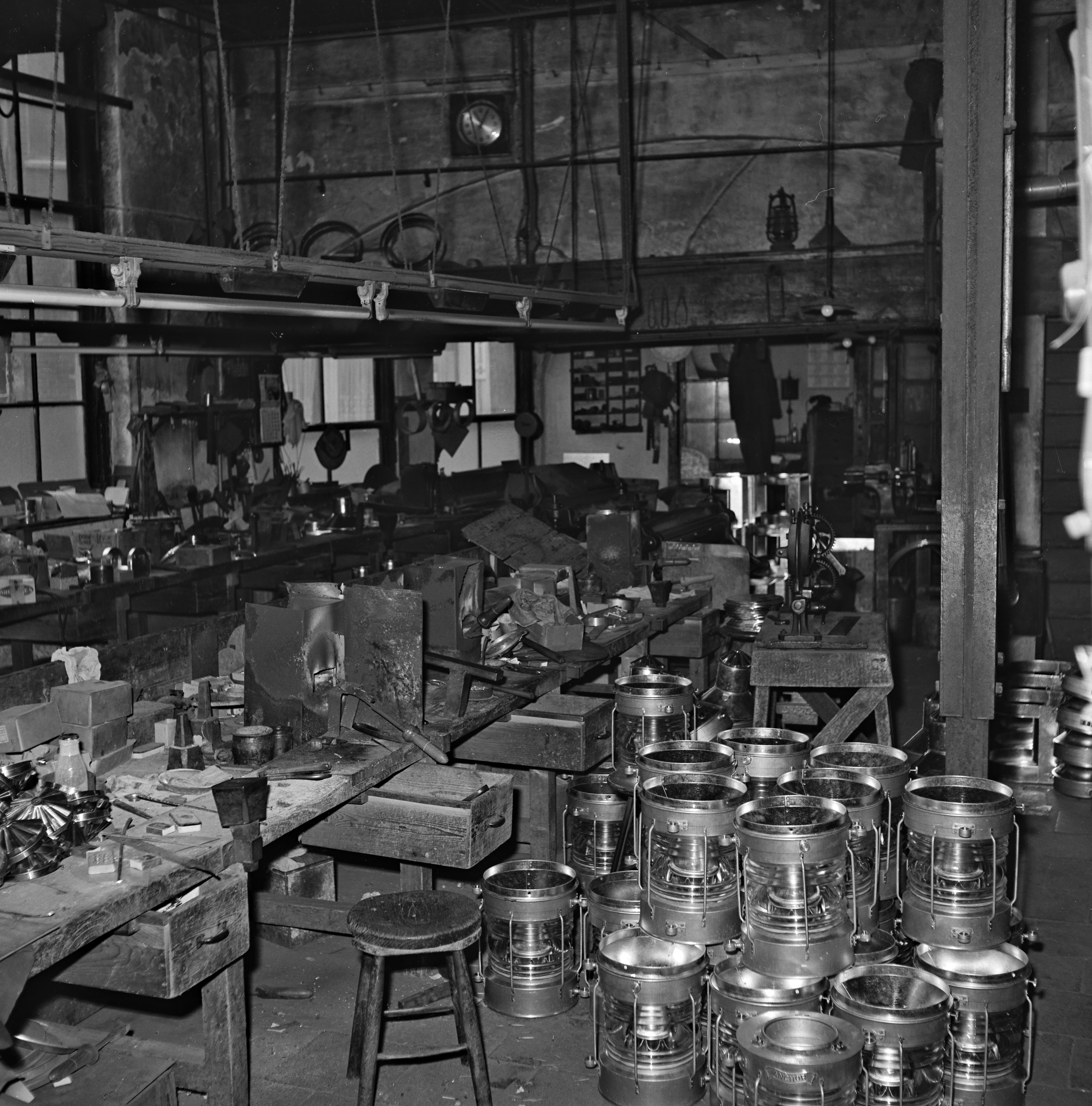Interieur van koper- en blikslagerij Zock op de hoek Bleijenhoek/Riedijk.