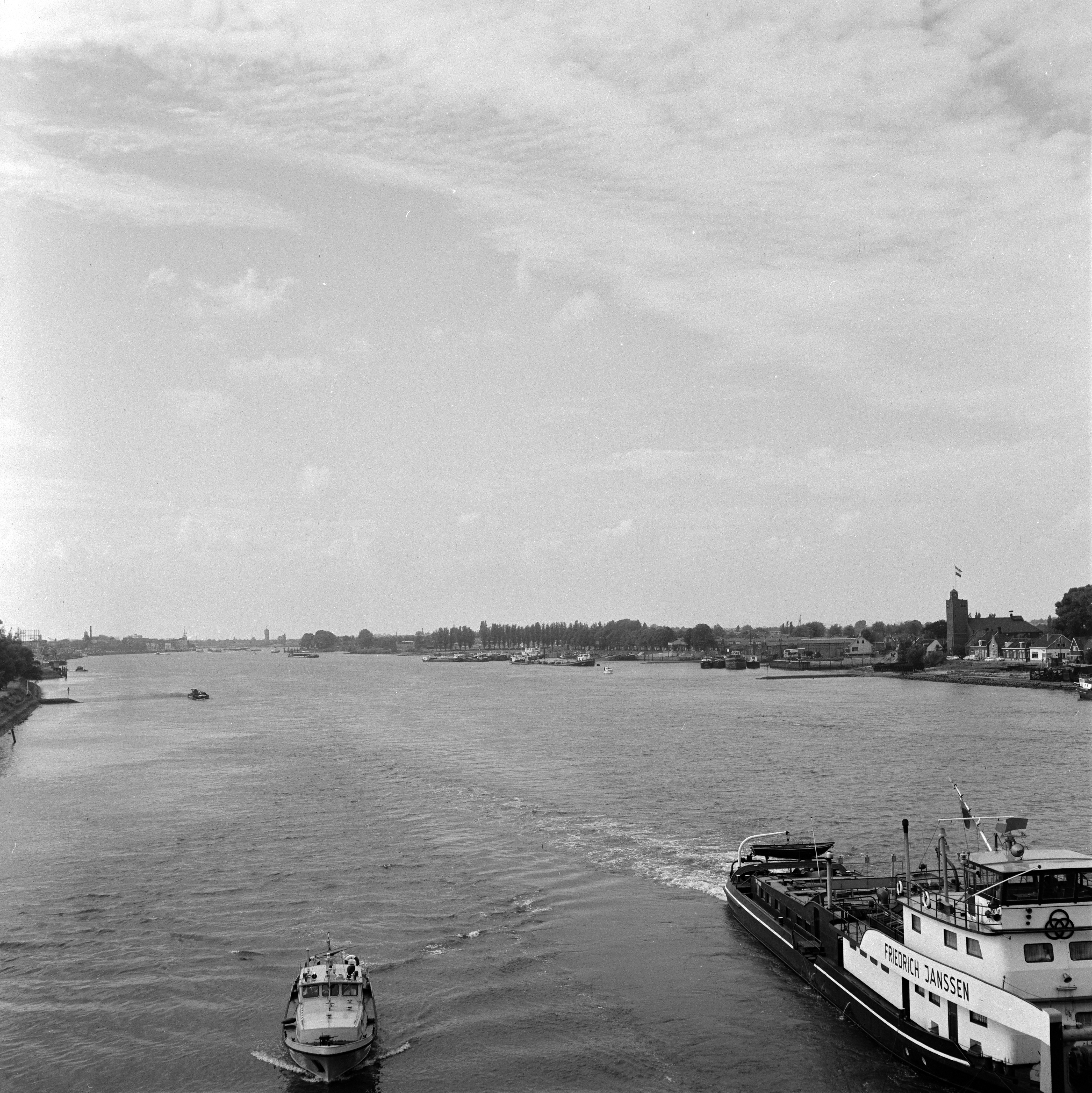 - De Merwede vanaf de Merwedebrug naar het westen gezien. Rechts de Hervormde Kerk aan de Kerkbuurt in Papendrecht.