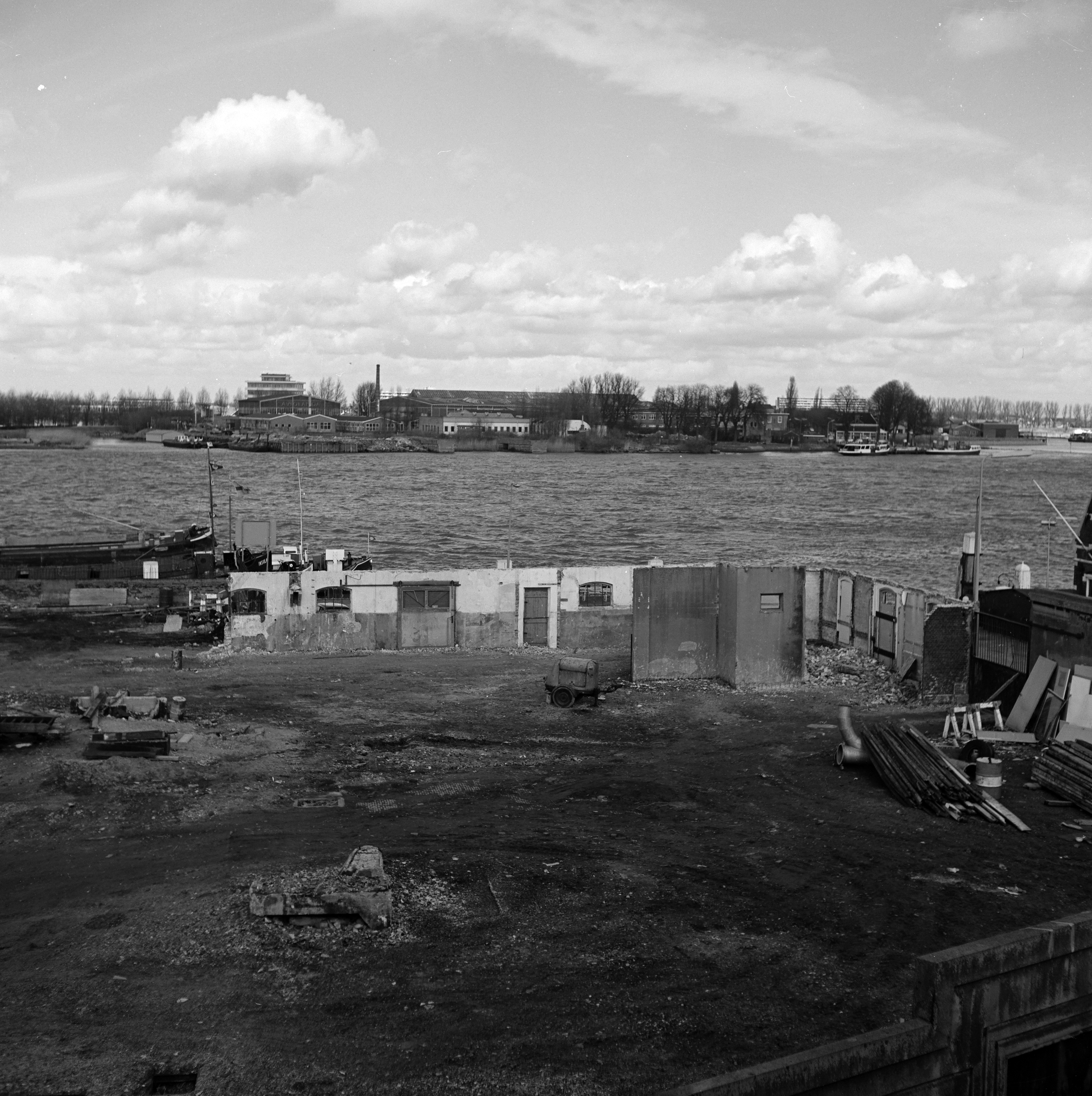 Sloop van de gasfabriek, gezien vanaf de Riedijk naar de Merwekade en Aviolanda in …