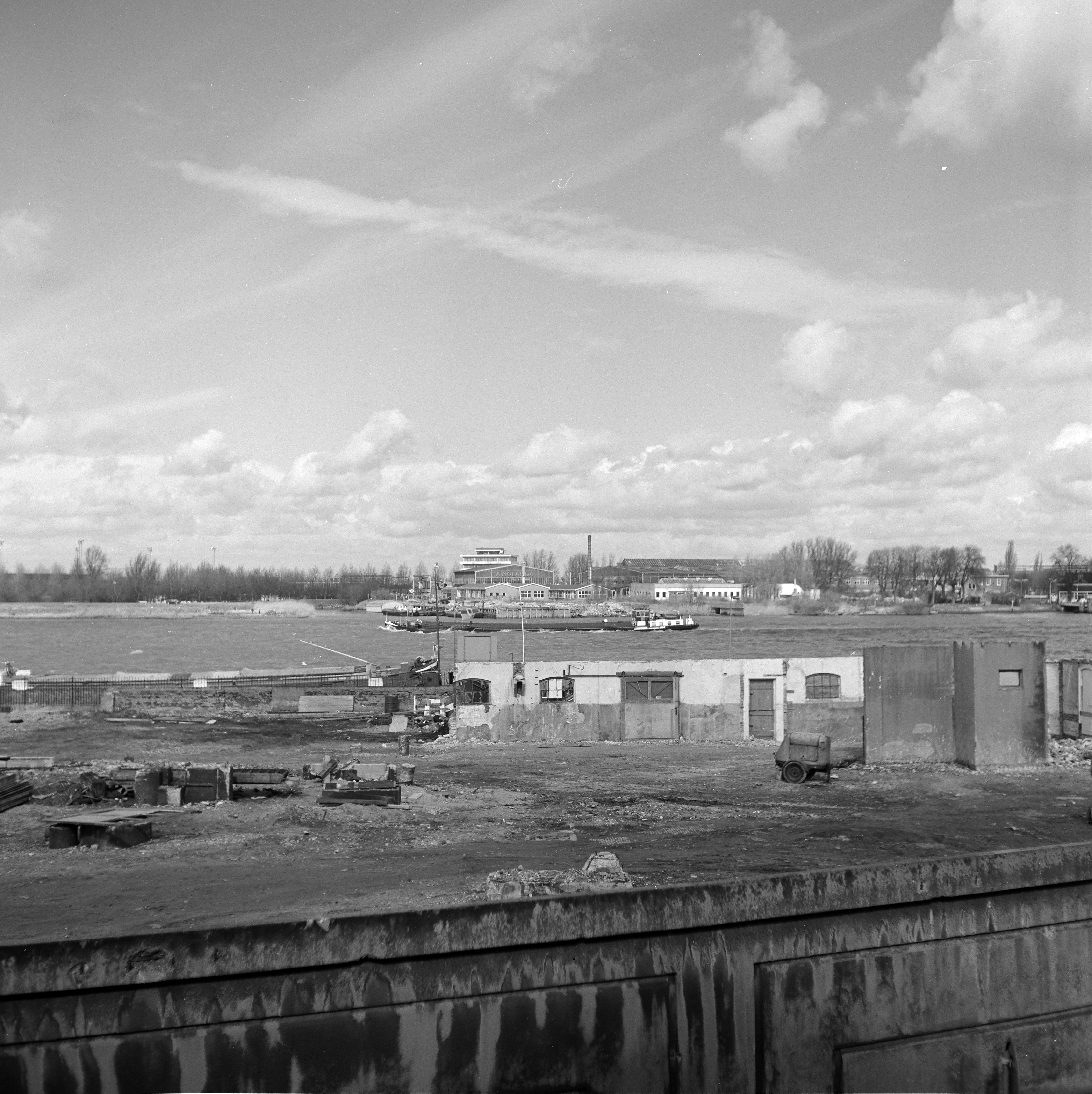 Sloop van de gasfabriek, gezien vanaf de Riedijk naar de Merwekade en Aviolanda in …