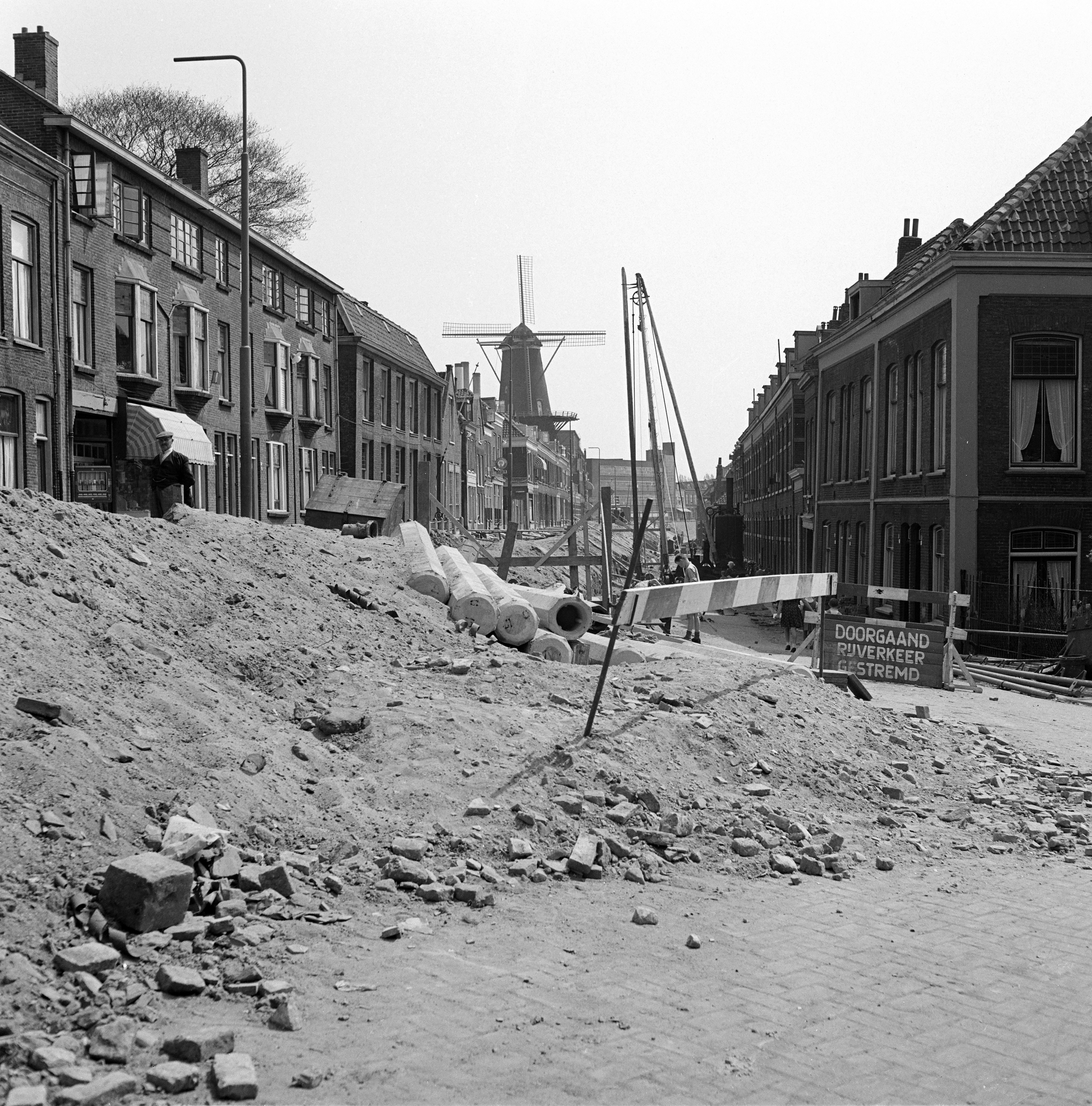 Reconstructie van de Noordendijk vanaf het Kromhout (rechts) richting molen Kijck over den Dijck en de elektriciteitscentrale.