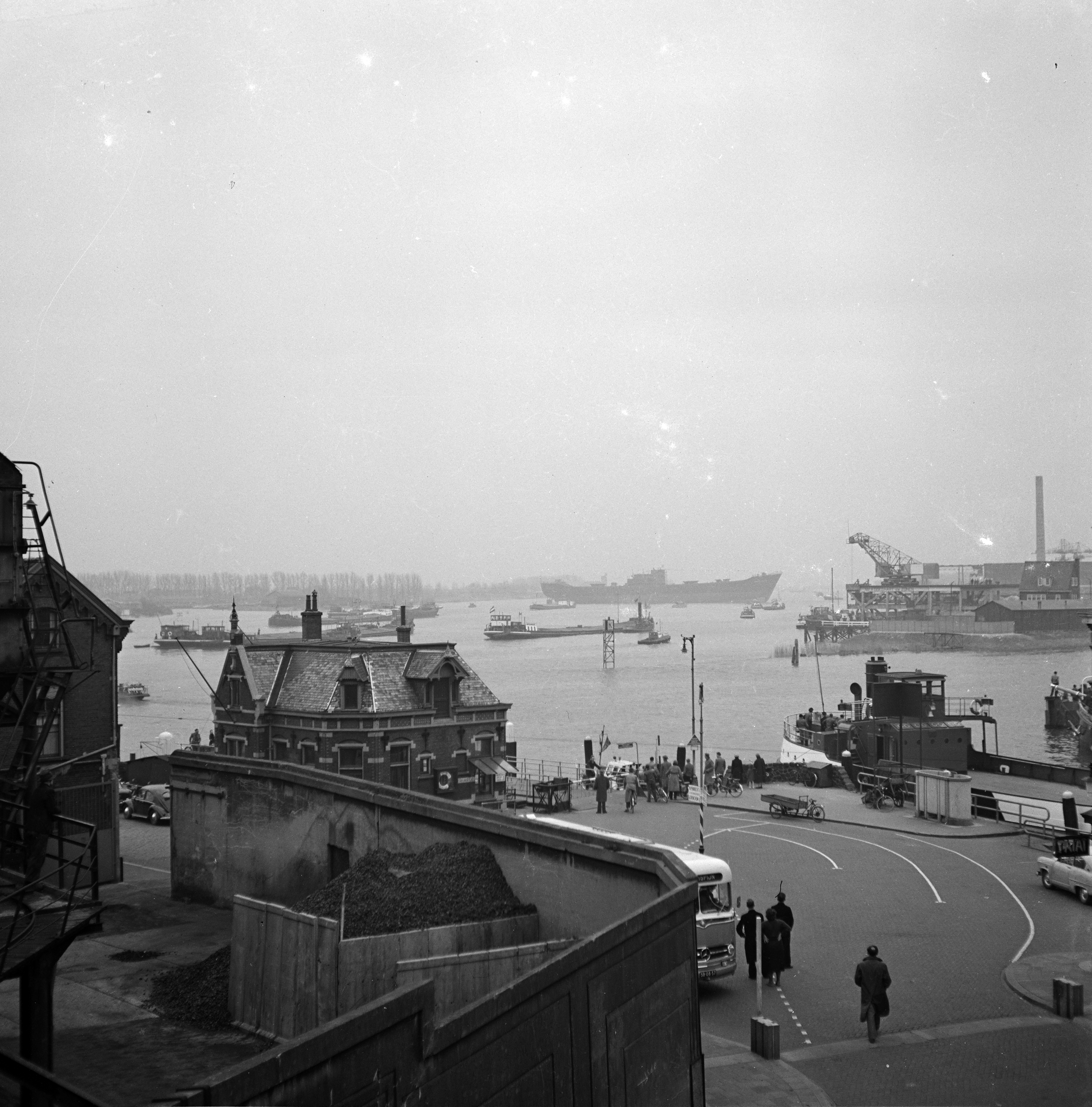 Op de voorgrond de gasfabriek op de hoek van Bleijenhoek en Papendrechts veer.