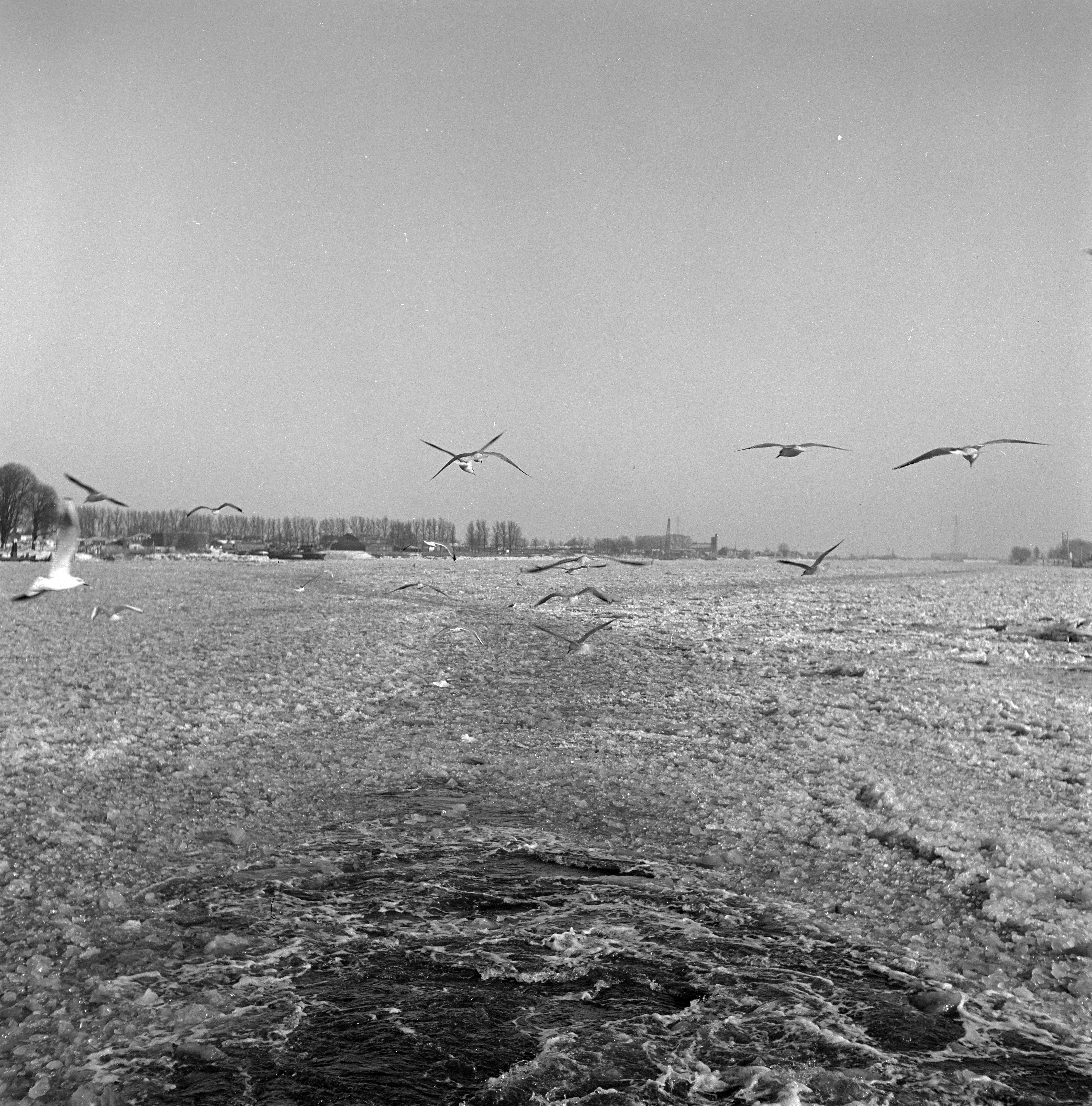 IJsgang op de Merwede voor de Papendrechtse oever.