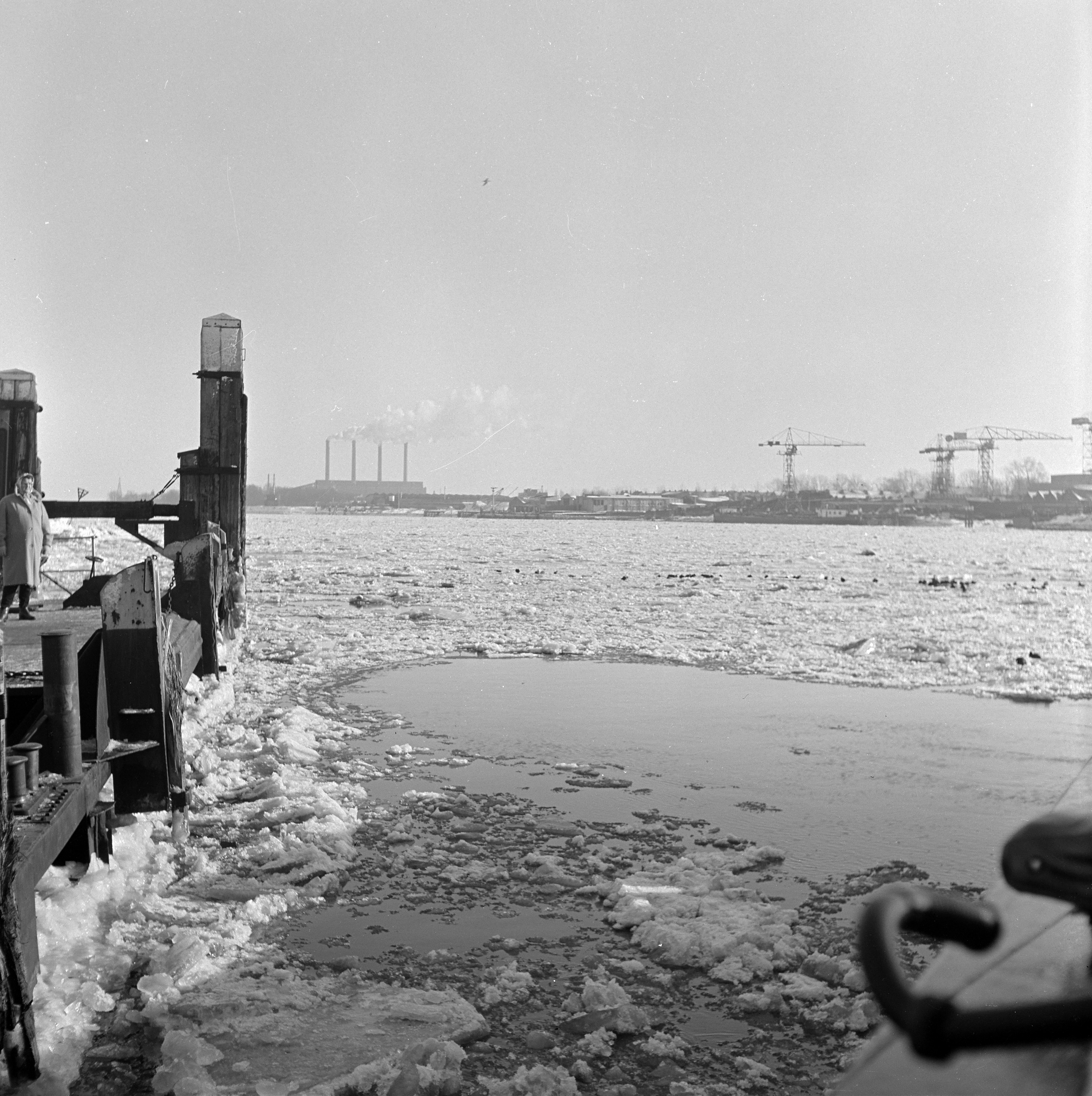- elektriciteitscentrales fabriekspijpen / schoorstenen hijskranen ijsgang scheepswerven veersteigers