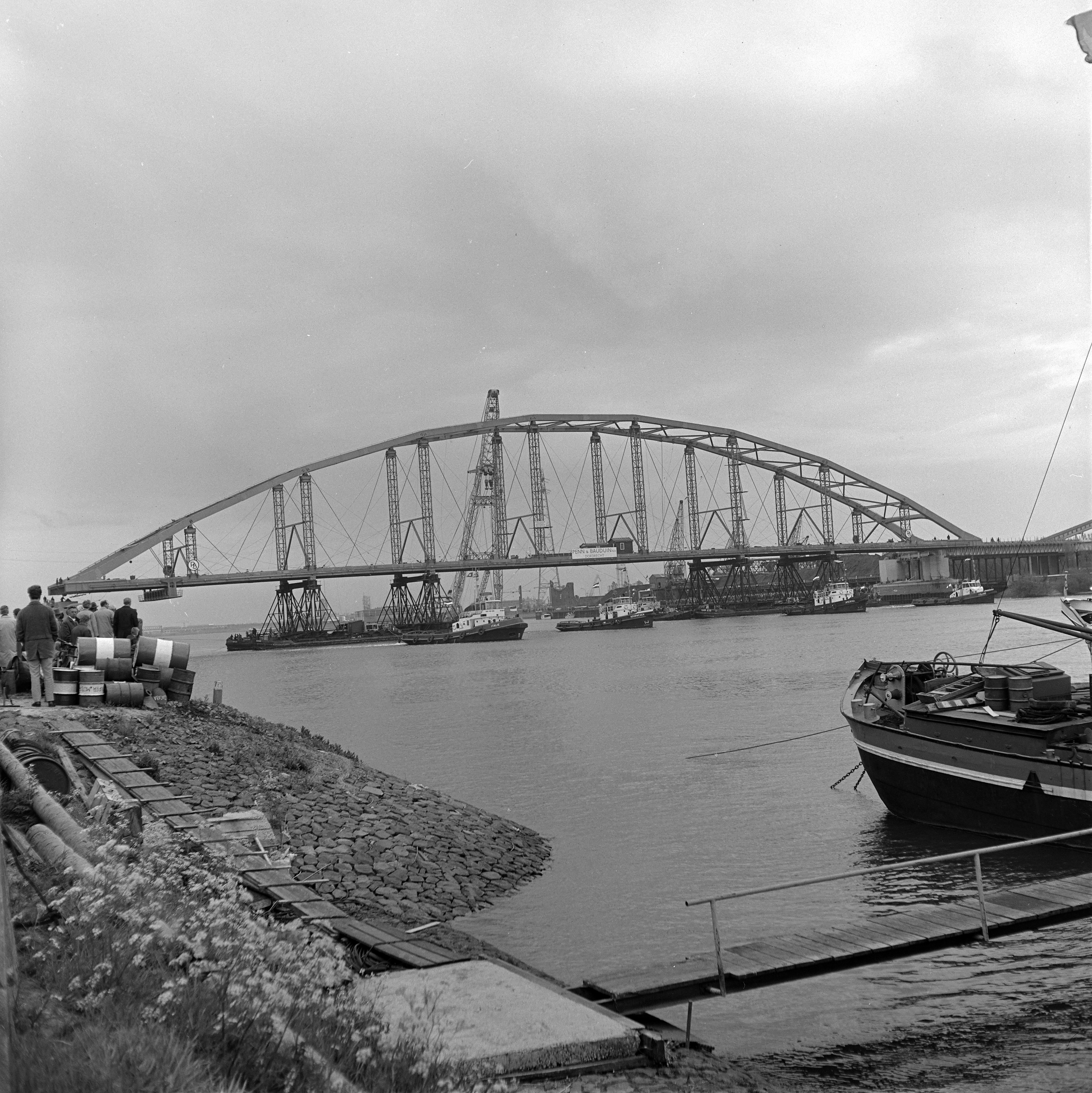 De Papendrechtse brug wordt op de pijlers gevaren.
