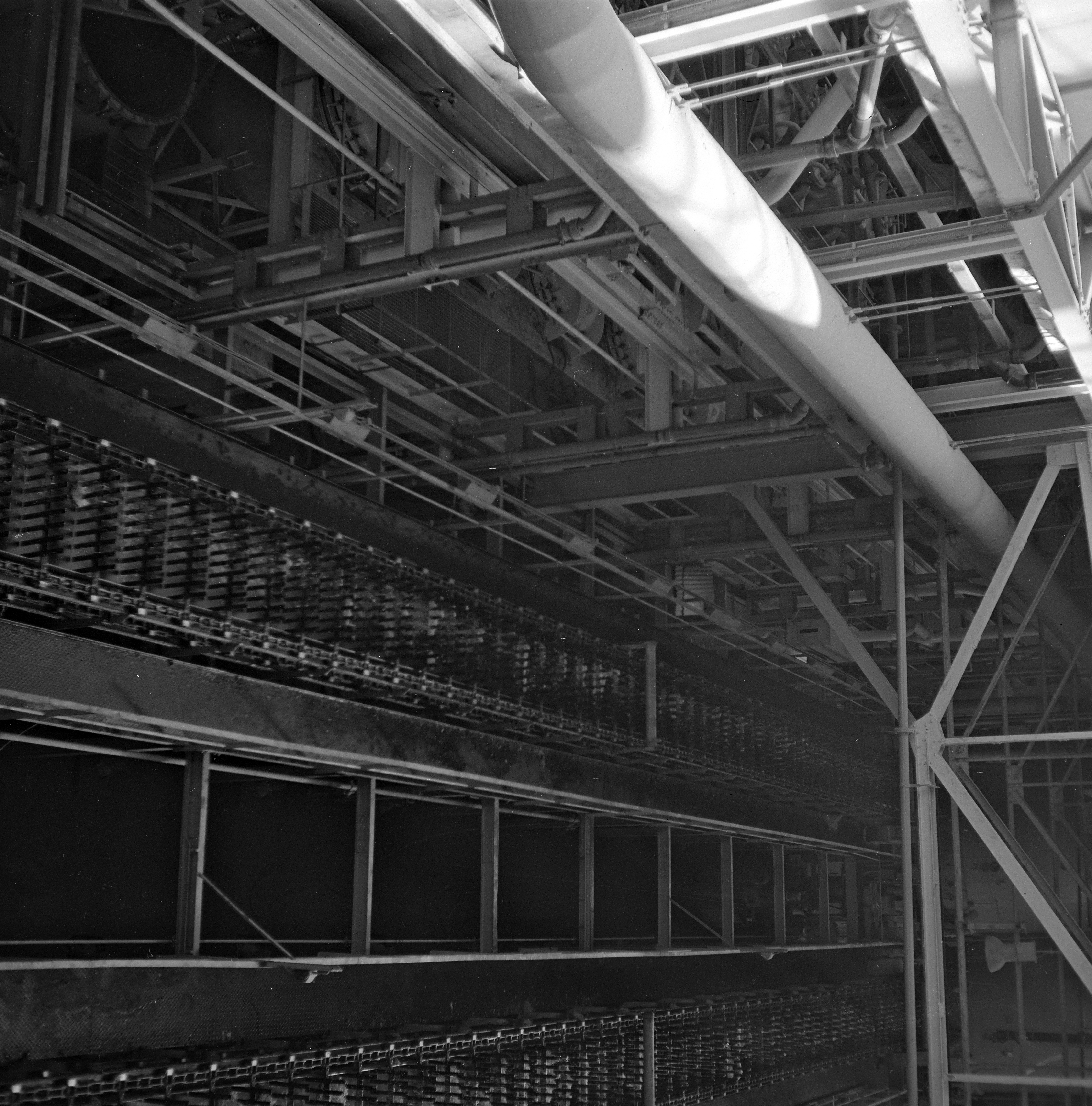 Transportband voor gesneden bieten in de suikerfabriek te Puttershoek.