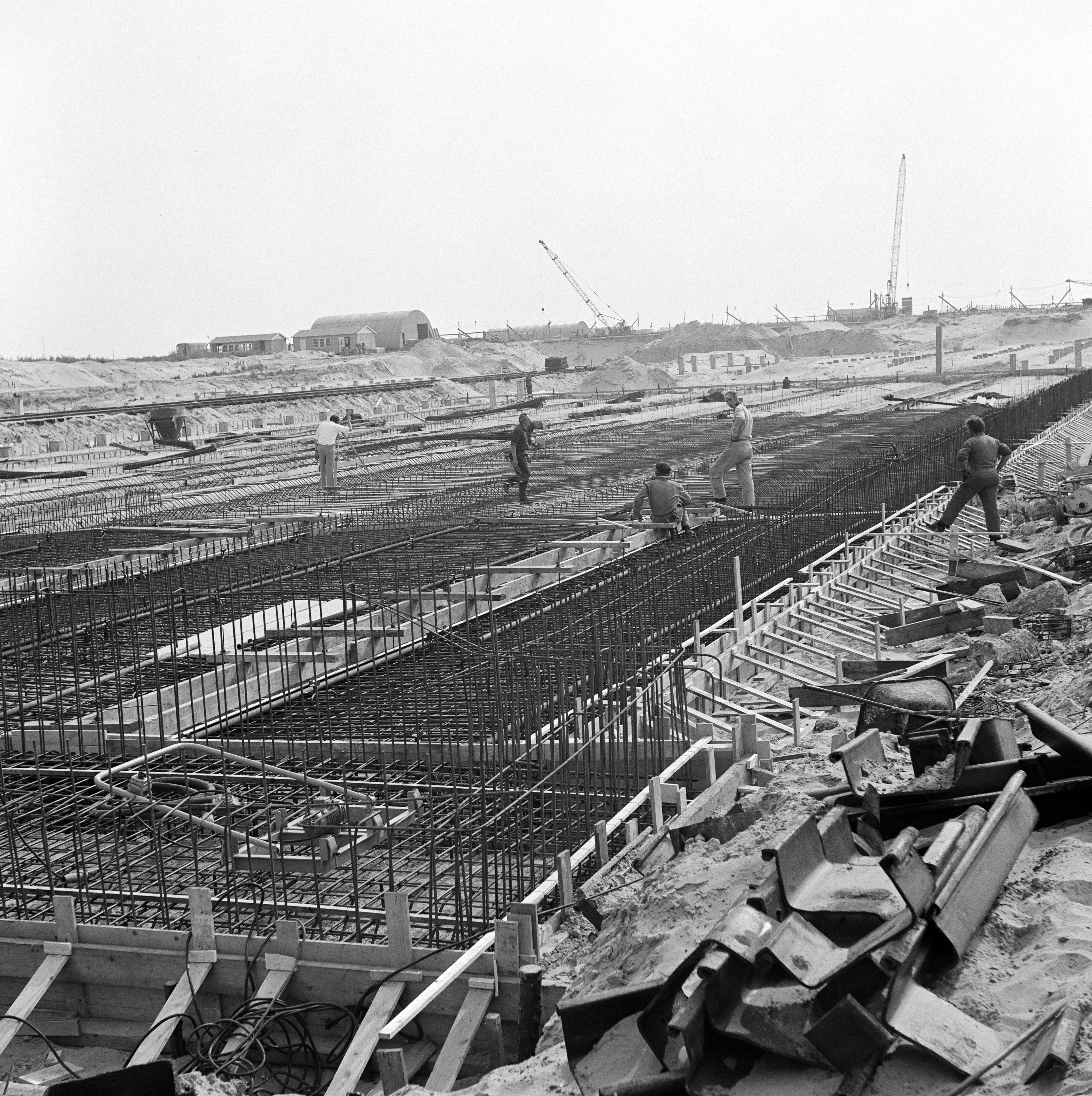 - arbeiders / werklieden betonvlechters bouwwerkzaamheden hijskranen rioolwaterzuiveringen