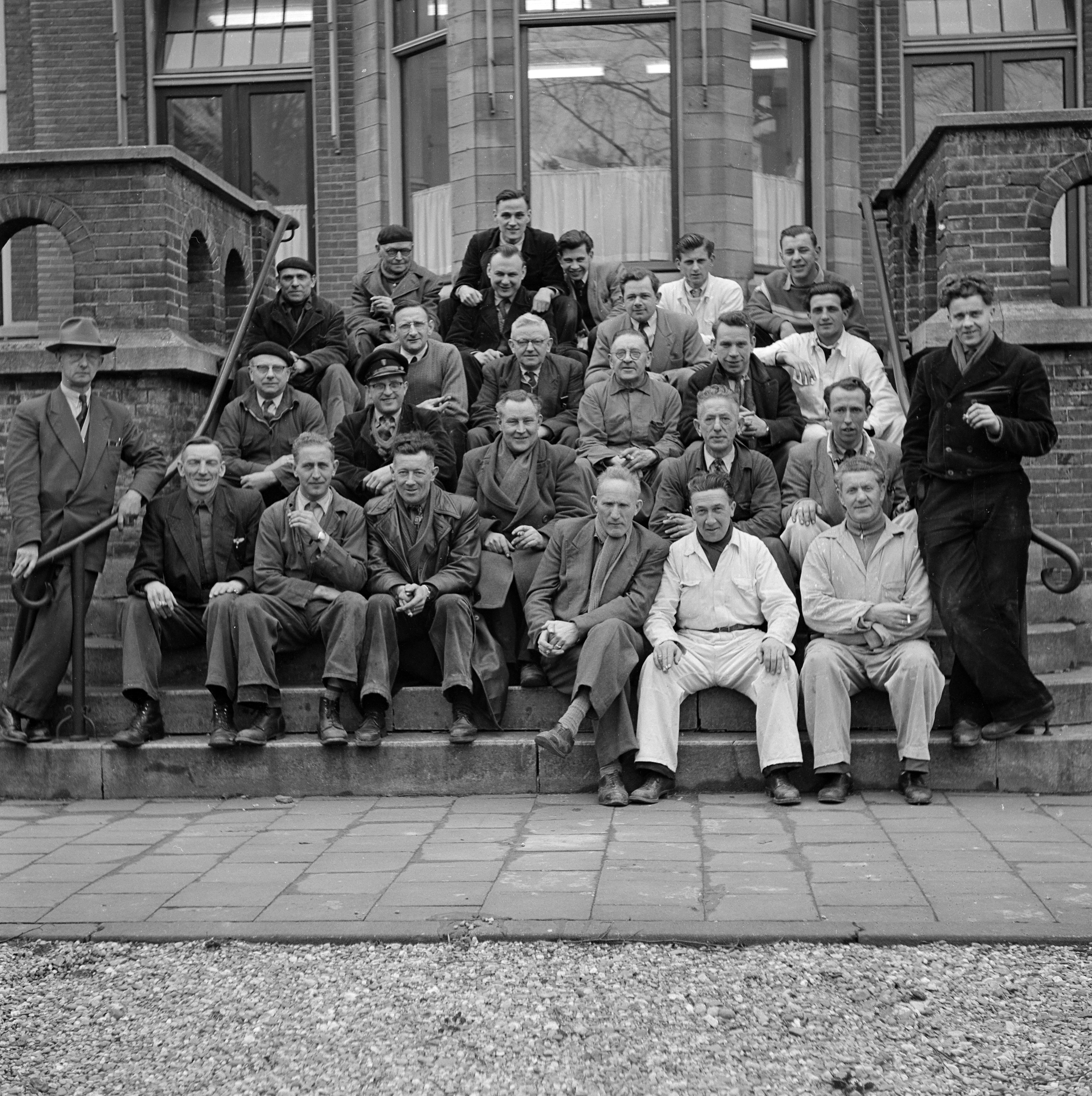 - Werkplaats-personeel van Gemeentewerken aan de achterzijde van villa Soekasari aan de Godfried Schalckensingel.