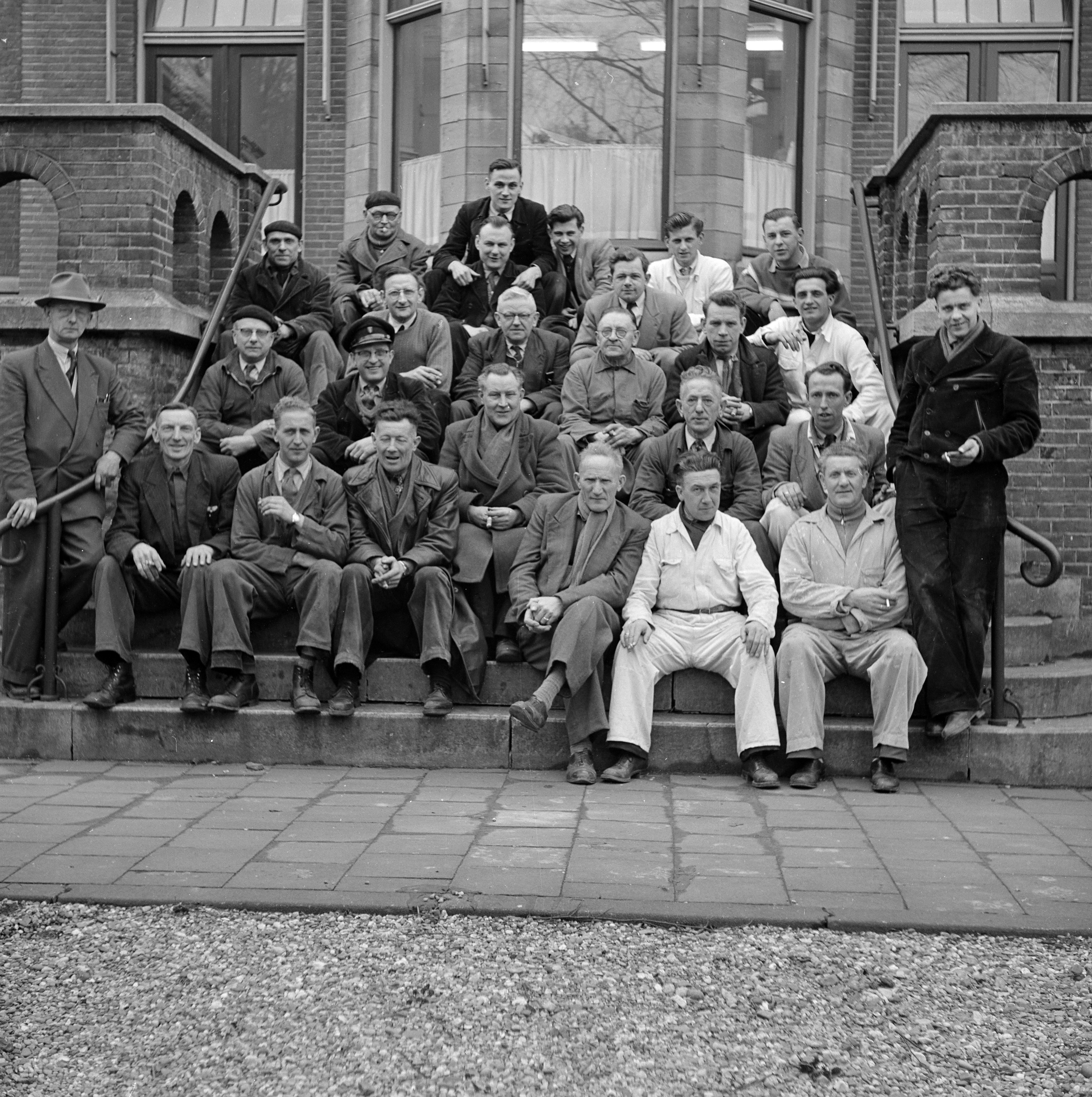 - Werkplaats-personeel van Gemeentewerken aan de achterzijde van villa Soekasari aan de Godfried Schalckensingel.