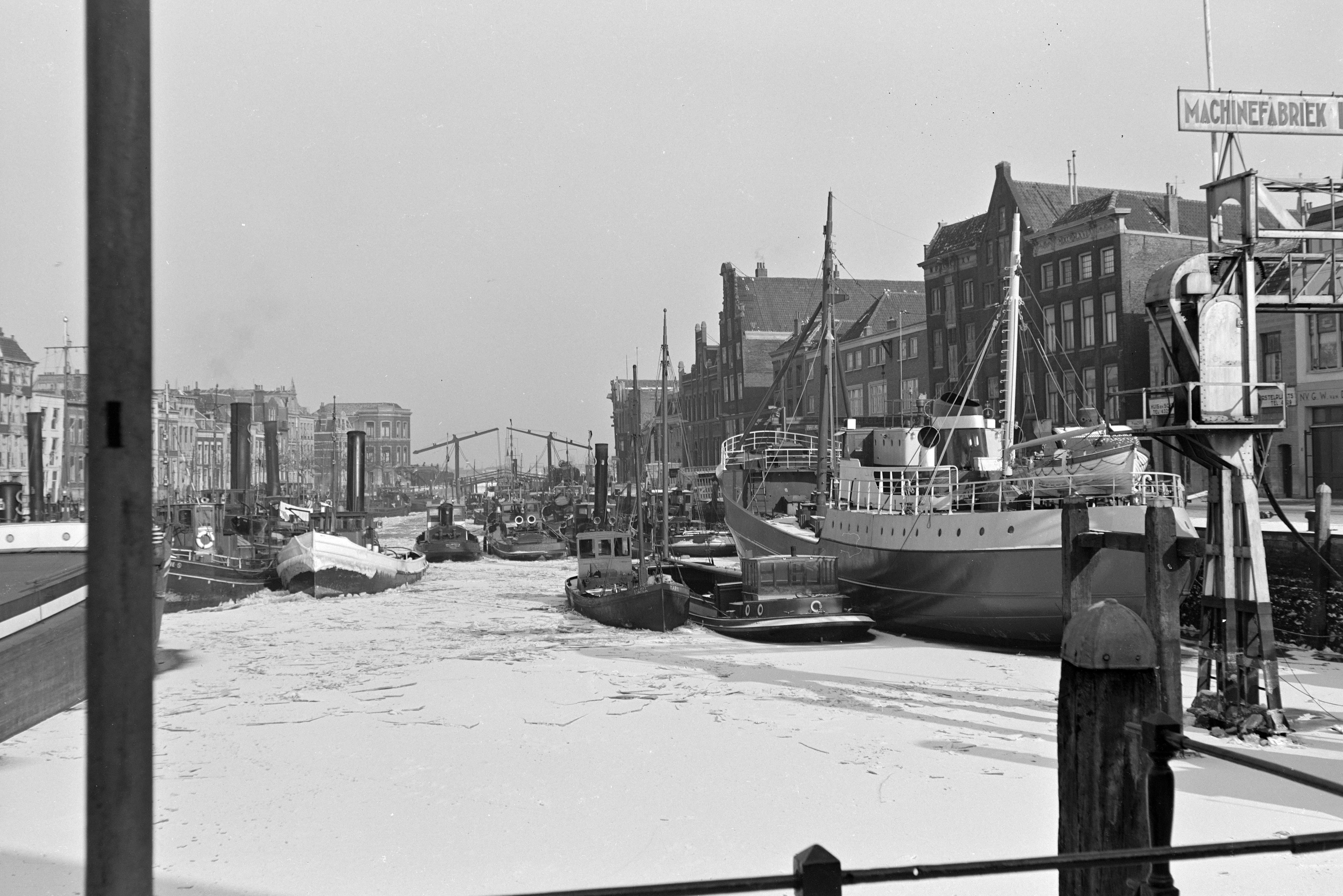 De Kuipershaven dicht gevroren met rechts de kraan van Straatman machine fabriek