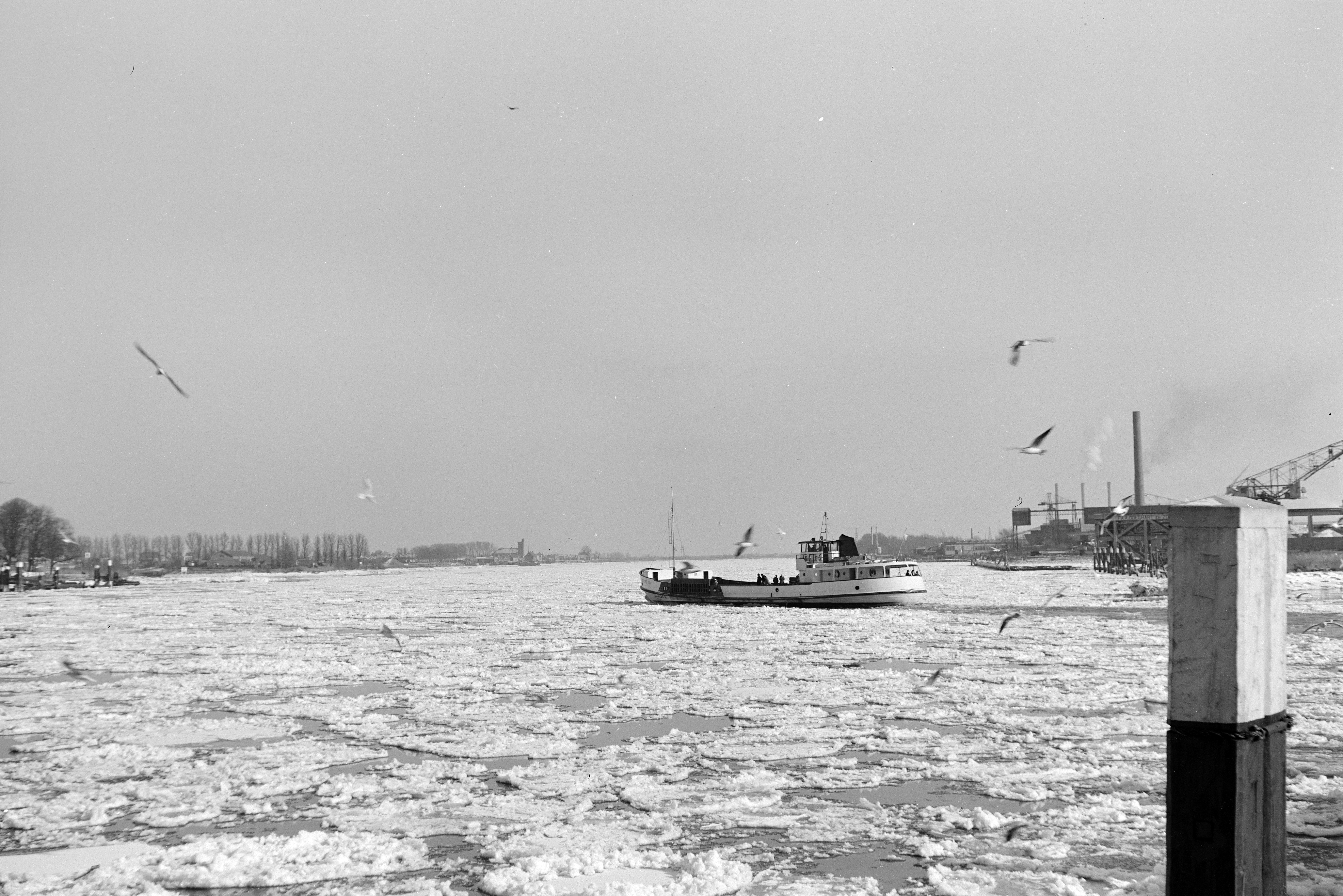 Veerboot naar Papendrecht tussen de ijsschotsen op de Merwede.