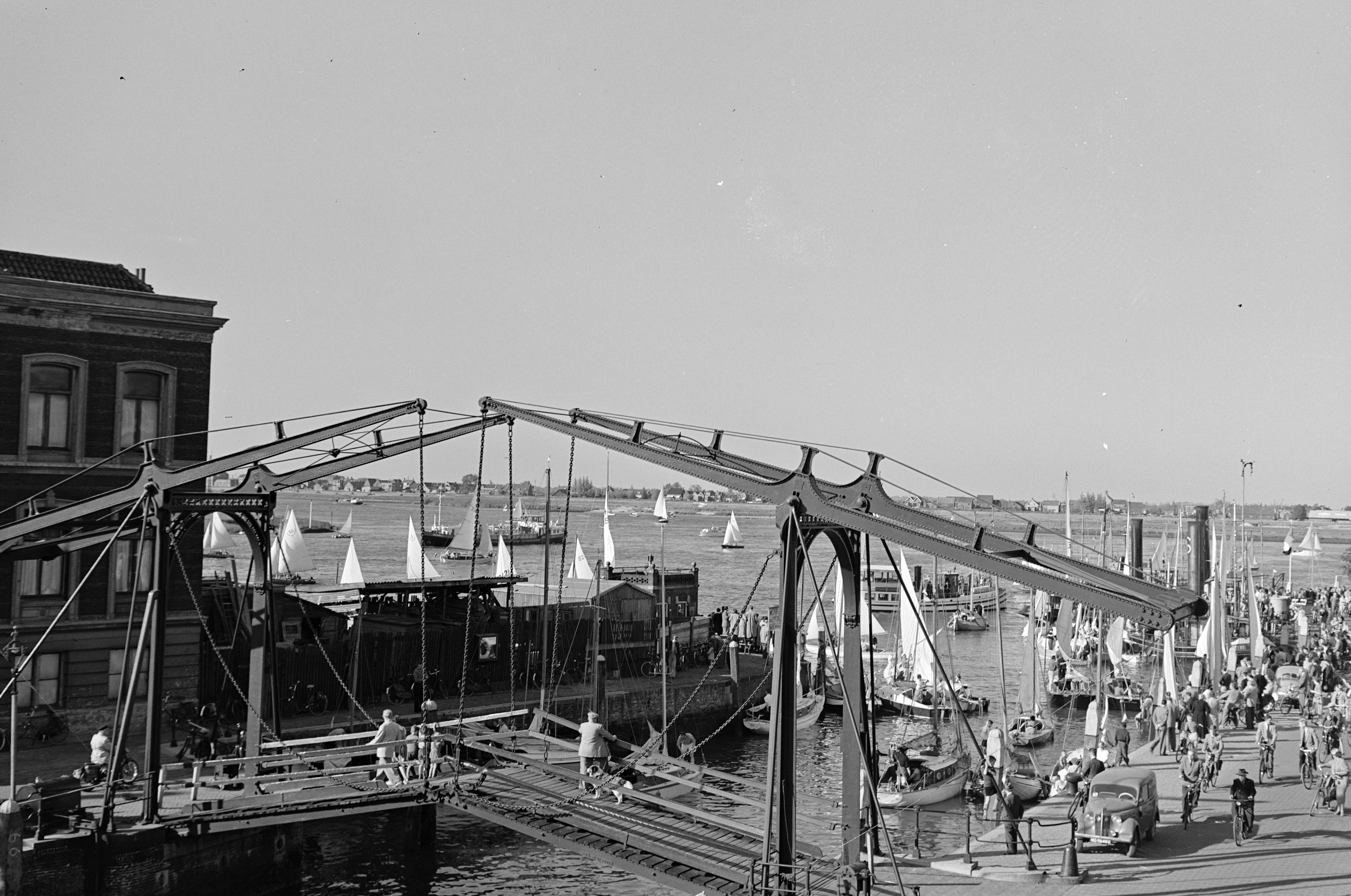 Damiatebrug over de Wolwevershaven. Links het Damiatebolwerk, rechts de Kuipershaven.