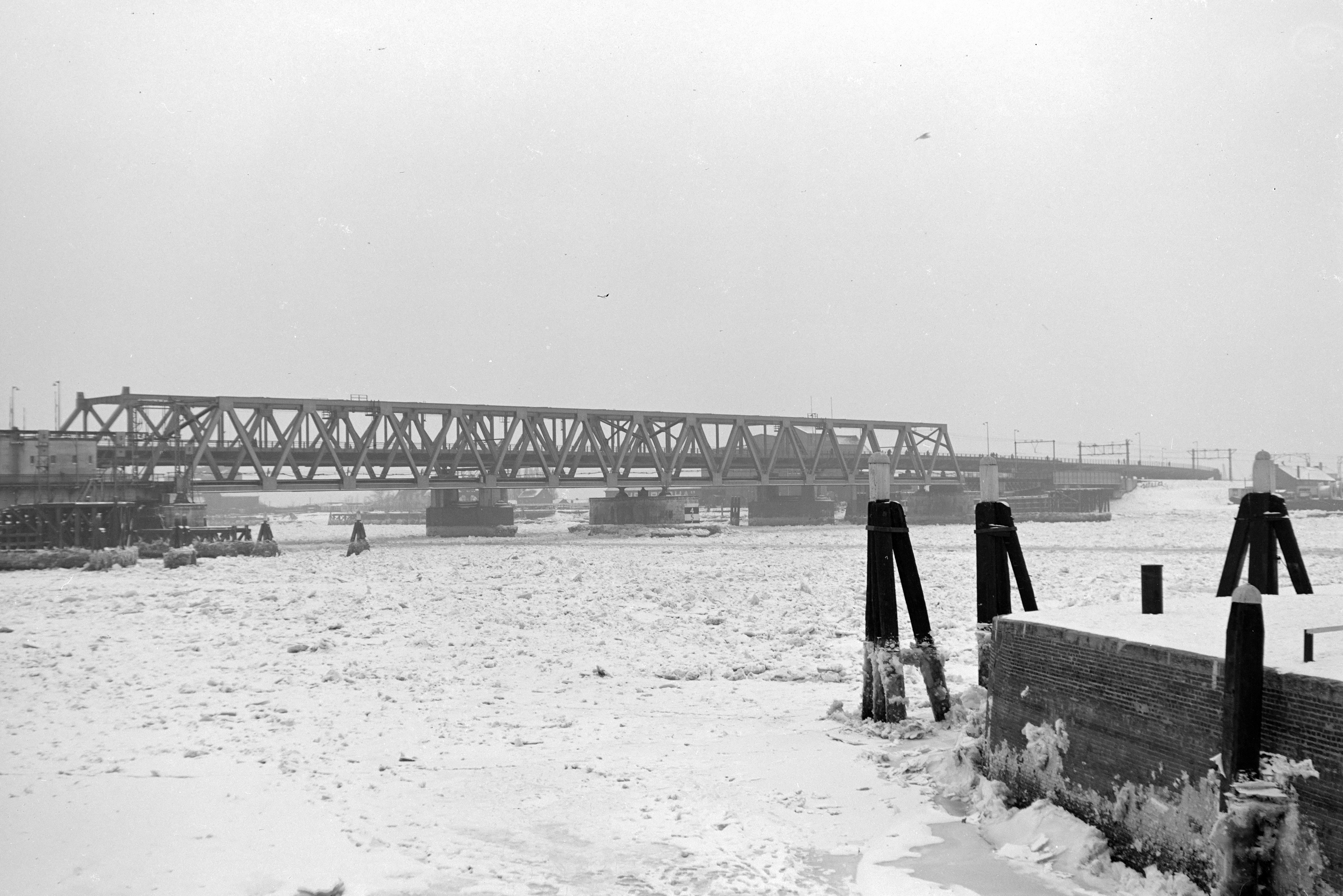 - Bruggen over de dichtgevroren Oude Maas, gezien vanaf de Buiten Kalkhaven.