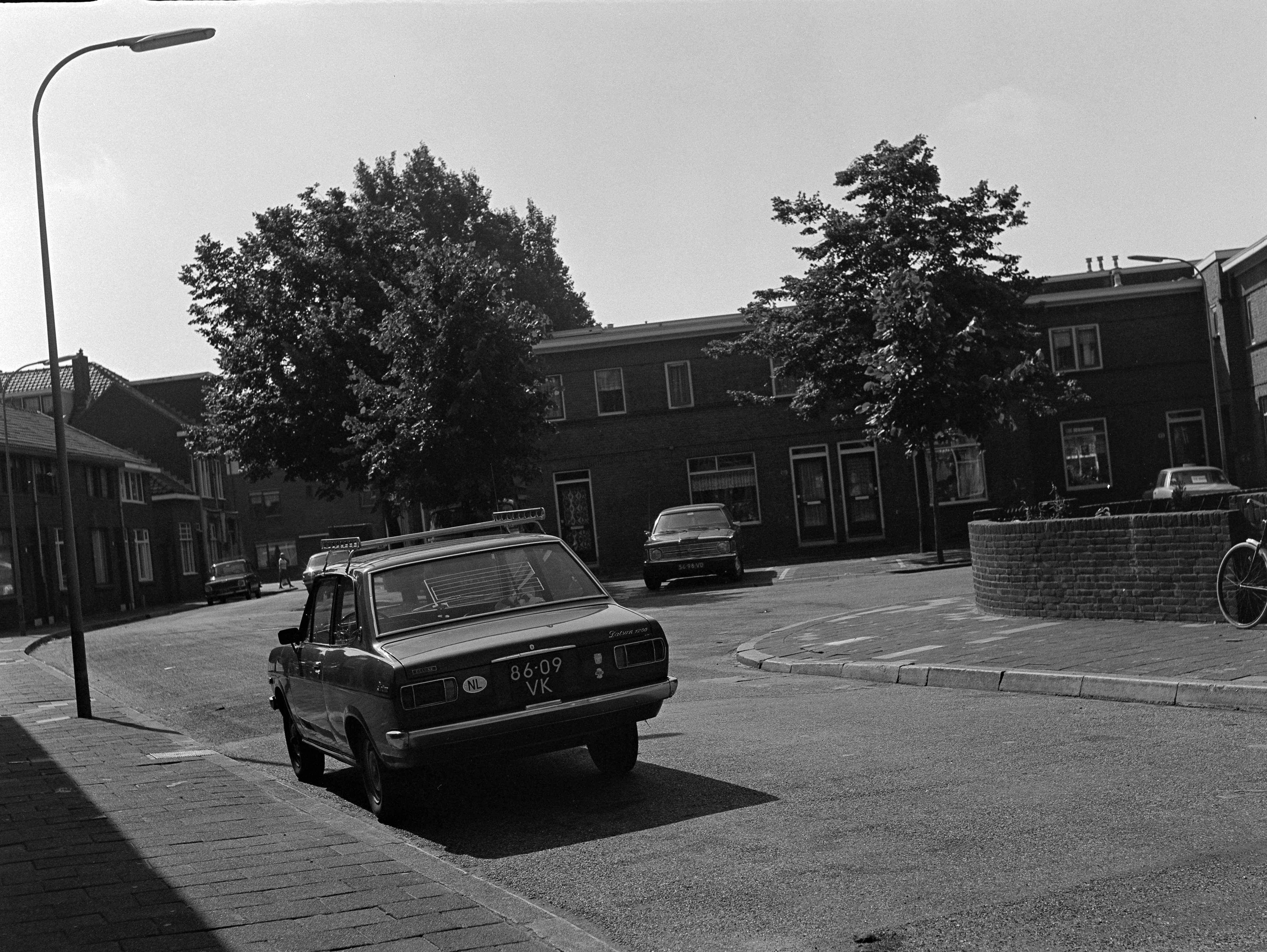 Destijds een alledaagse opname, inmiddels een nostalgisch sfeerplaatje in Krispijn en een heerlijke auto foto. Auto’s werden toen nog zelden op de stoep geparkeerd. Een schone straat was heel gewoon. Op de voorgrond een Datsun 1200 Sunny voorzien van een Doe-Het-Zelf opplak achterruitverwarming. Misschien wel samen, voor niet al te veel geld, gekocht met het imperiaal bij AutoComfort op het Heijeplein. Rechts daarvan een Ford TC voor Jan en Alleman en links een Renault 6 voor als je met vier volwassenen comfortabel en goedkoop van A naar B wilde. Auto rechts in de hoek. Markplaats was er nog niet, dus plakte je een papier met TE KOOP op de achterruit.
