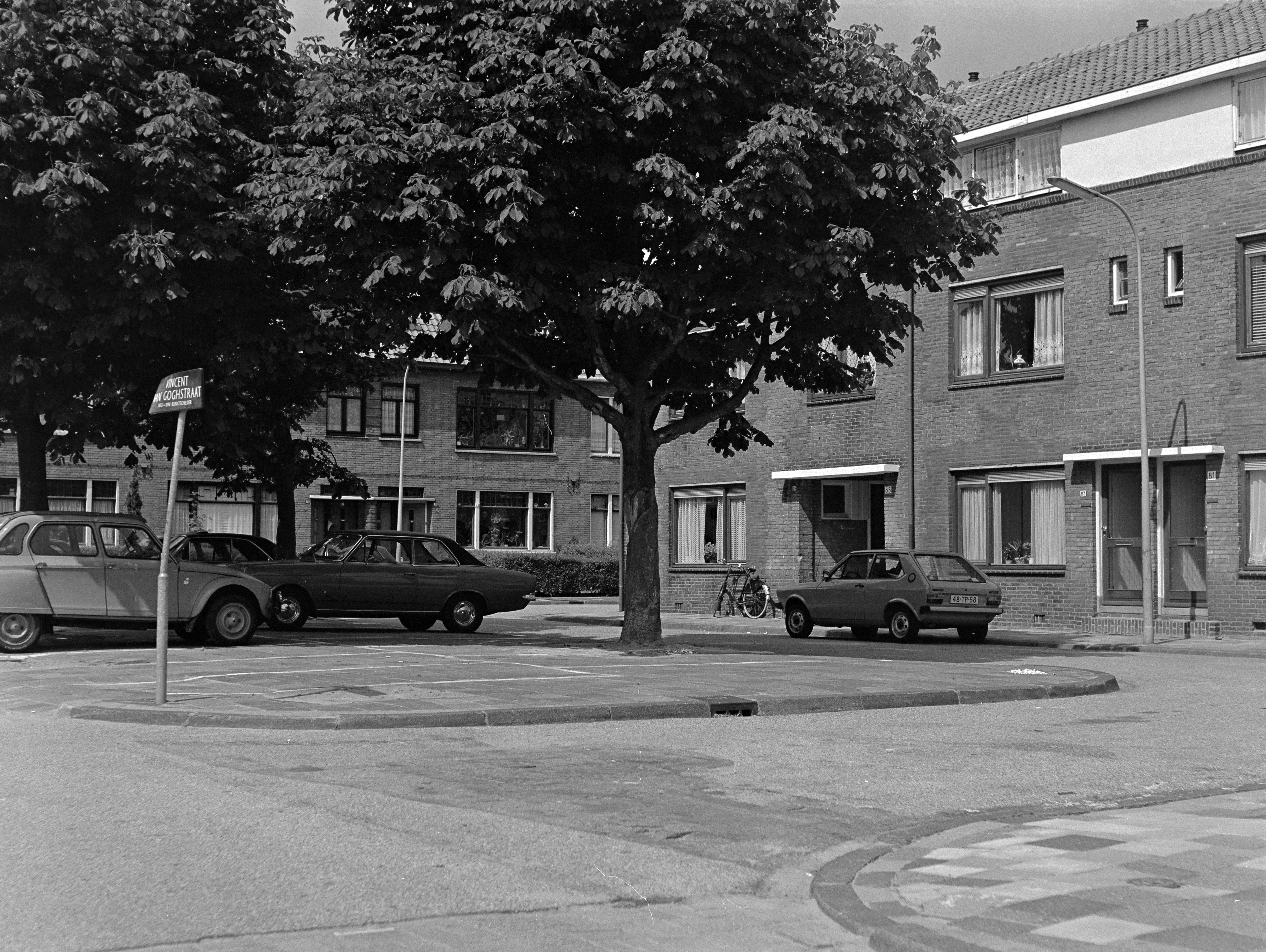 Vincent van Goghstraat ter hoogte van de David Blesstraat (links, niet zichtbaar). De huizen links, achter de auto's, staan in de Weissenbruchstraat.