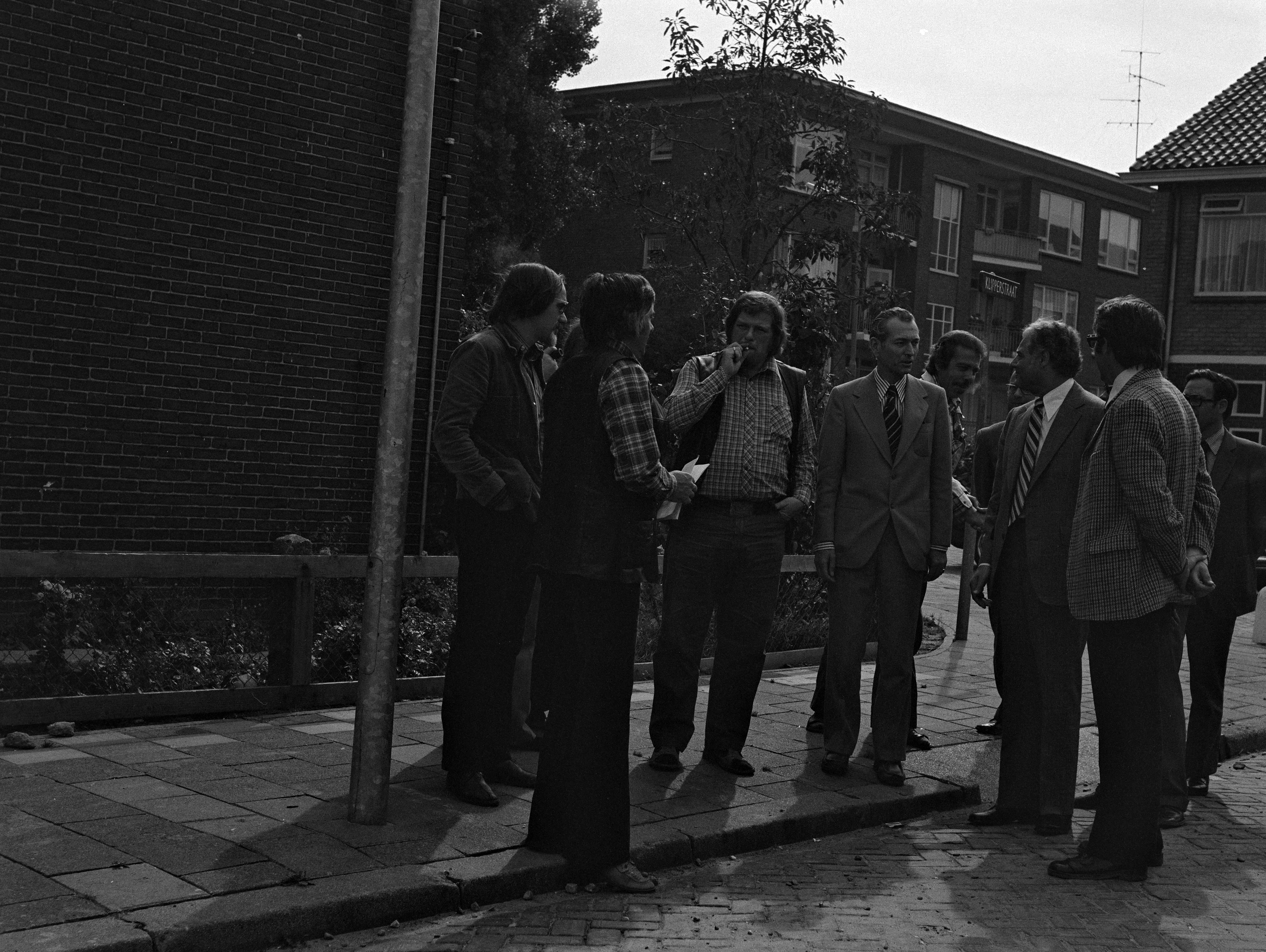 - Bezoek van staatssecretaris Jan Schaefer (met sigaret) van het Ministerie van Volkshuisvesting en Ruimtelijke Ordening bij de hoek Klipperstraat/Kotterstraat. Derde van rechts is burgemeester Van Zuuren.