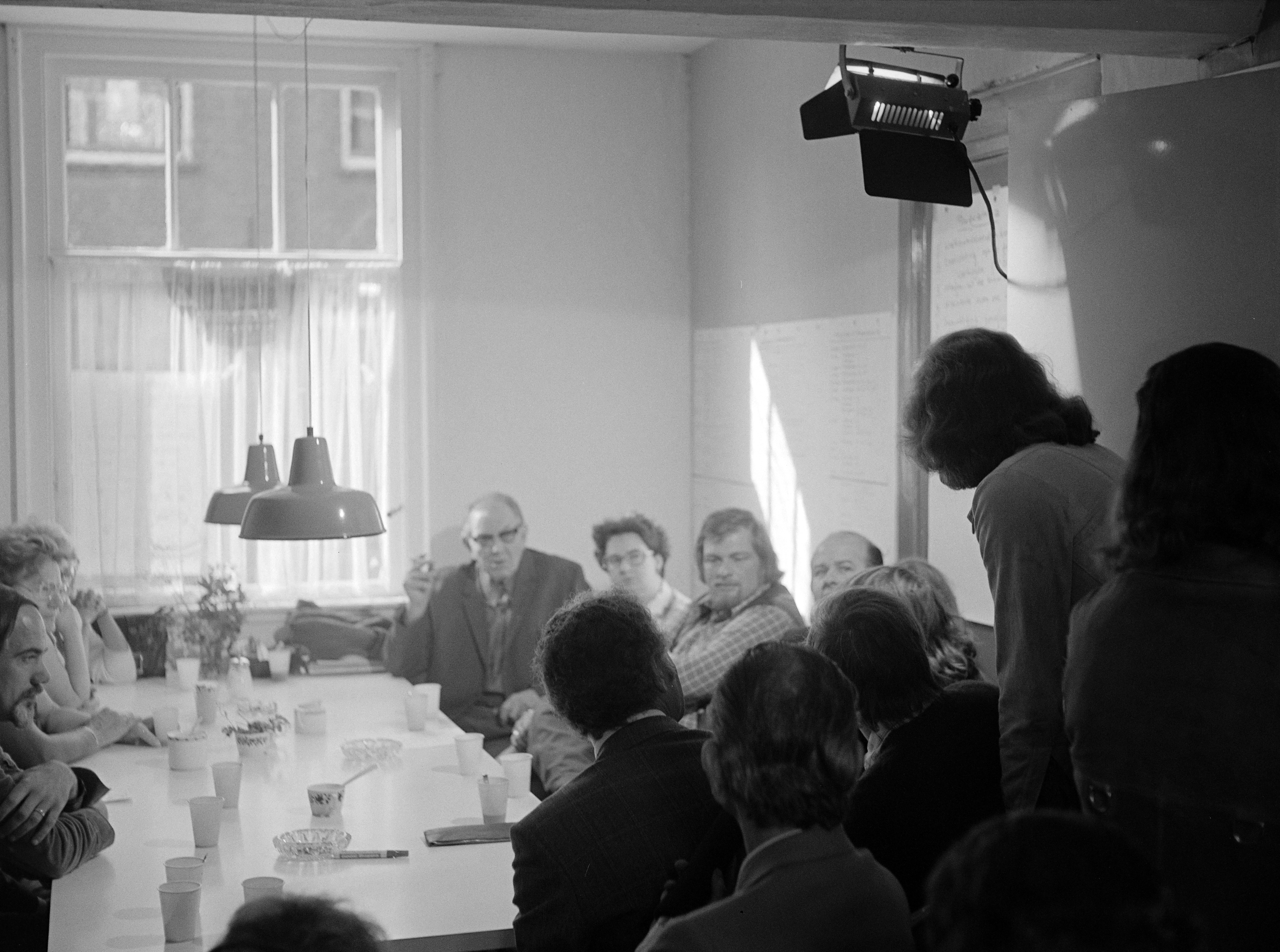 Bezoek van staatssecretaris Jan Schaefer (midden, met geruit overhemd) van het Ministerie van Volkshuisvesting en Ruimtelijke Ordening.