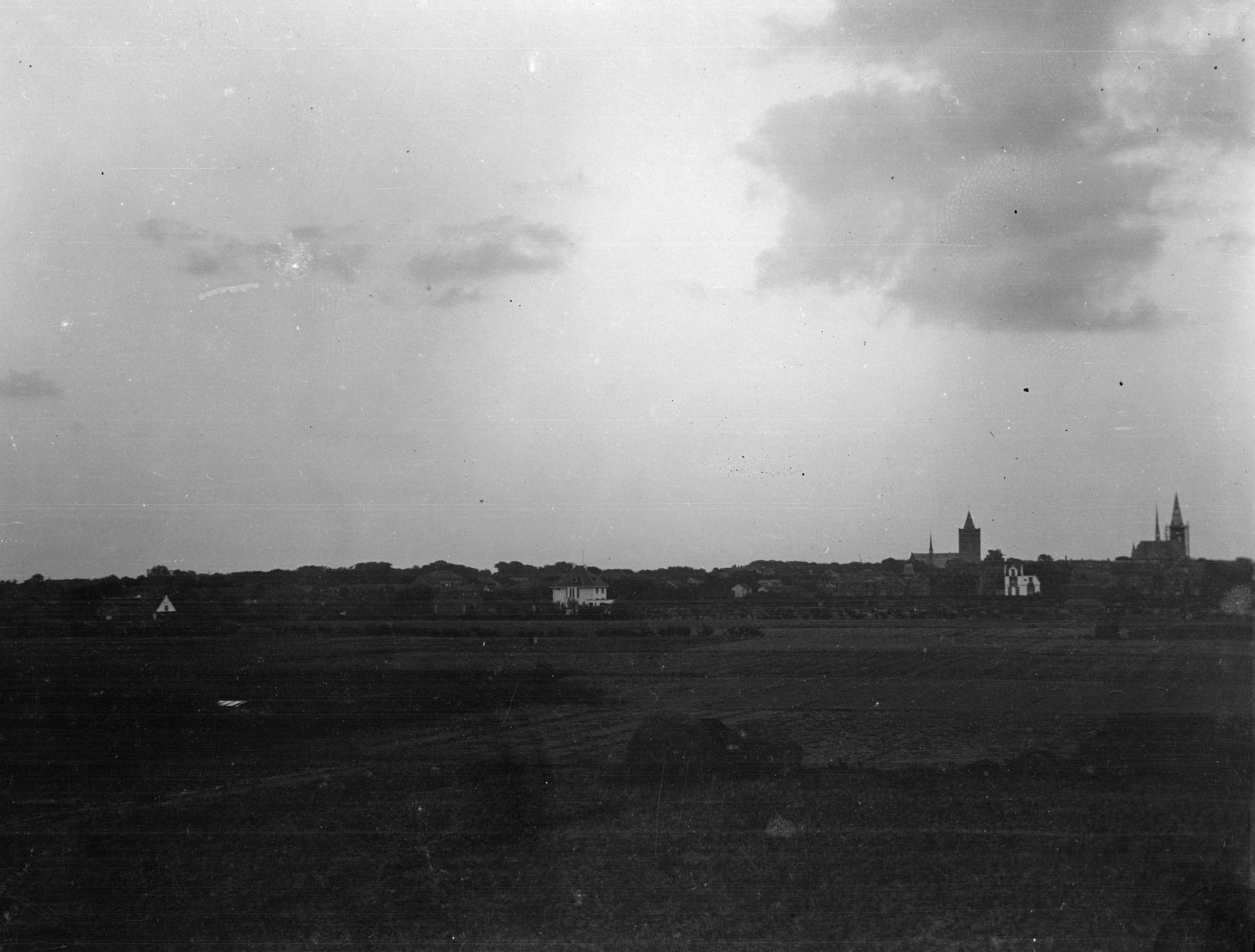 Noordwijk, gezien vanaf het Dobbelmannduin. Geheel rechts de Sint Jeroenskerk, links …